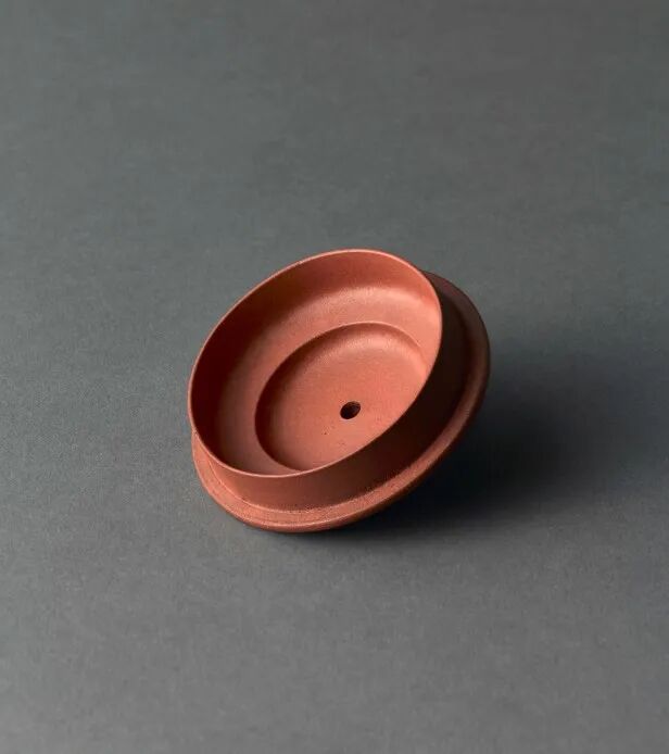 砂壶笠帽此制源于明代,取渔樵淡泊、晴耕雨读的文人思考。在古法全手工的制作上,要实践如斗笠般展檐向上后过渡至高台的两阶段构型,必须分成两个部份施作再结合,因此从盖内观之有着不同于其它盖型的阶段式构造,坊间对这种盖型俗称为“双层盖”。