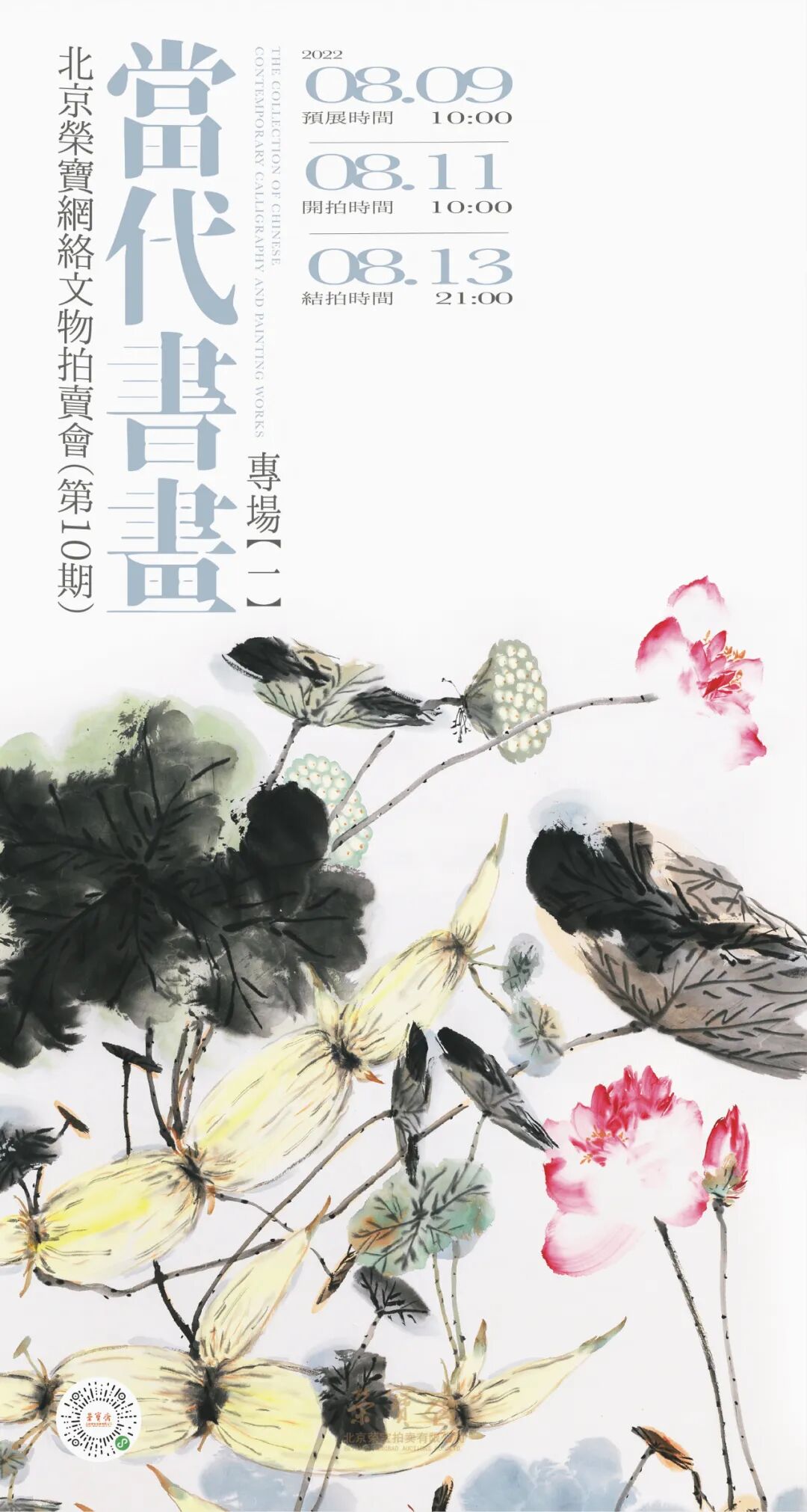 北京荣宝网络文物拍卖会(第10期)·当代书画专场(一)将于8月9日10:00—8月11日10:00开启线上预展,并于8月11日10:00开拍,8月13日21:00结拍。