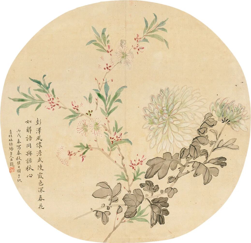 郑棣(清),清代女画家,号秀萼女史,作品着色淡雅,清气怡人。