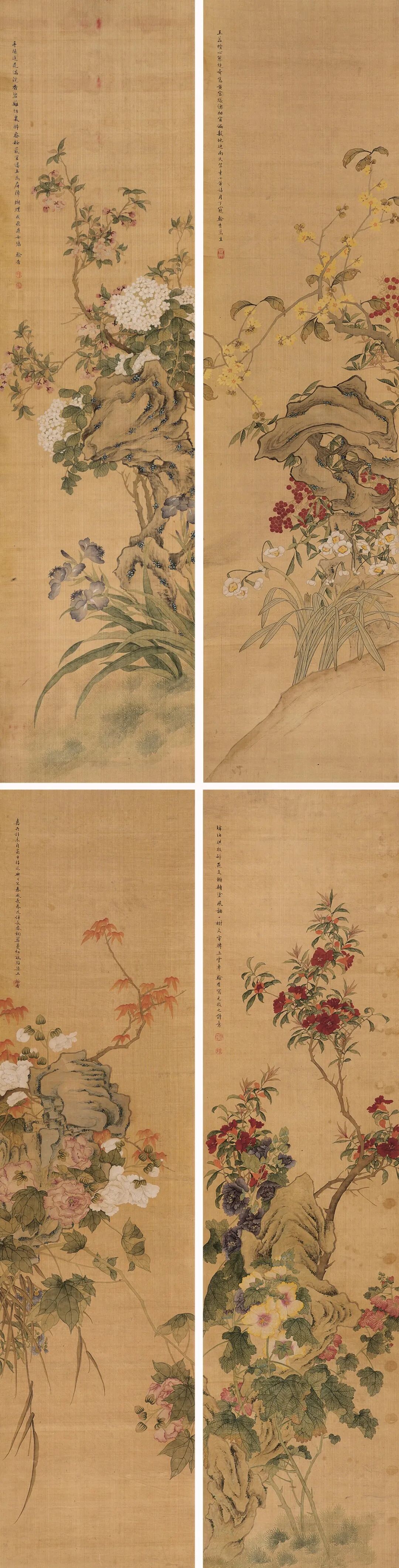 孙翰香花卉四屏