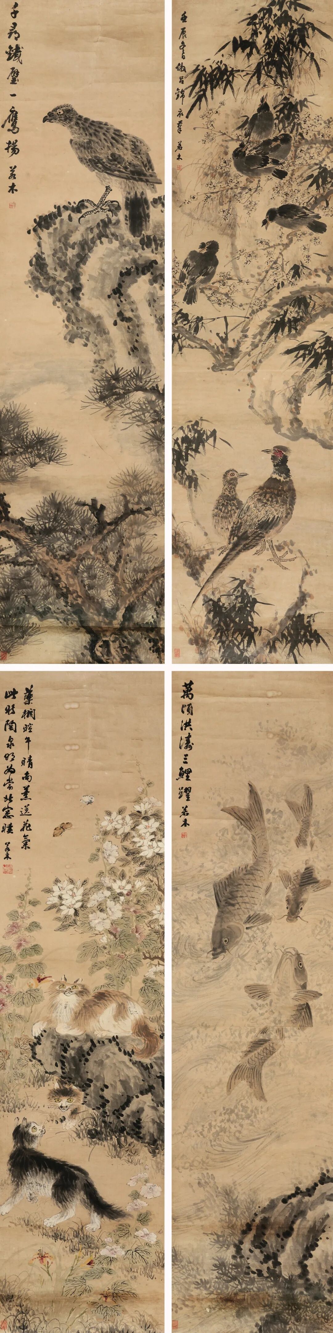 陈崇光 花鸟四屏