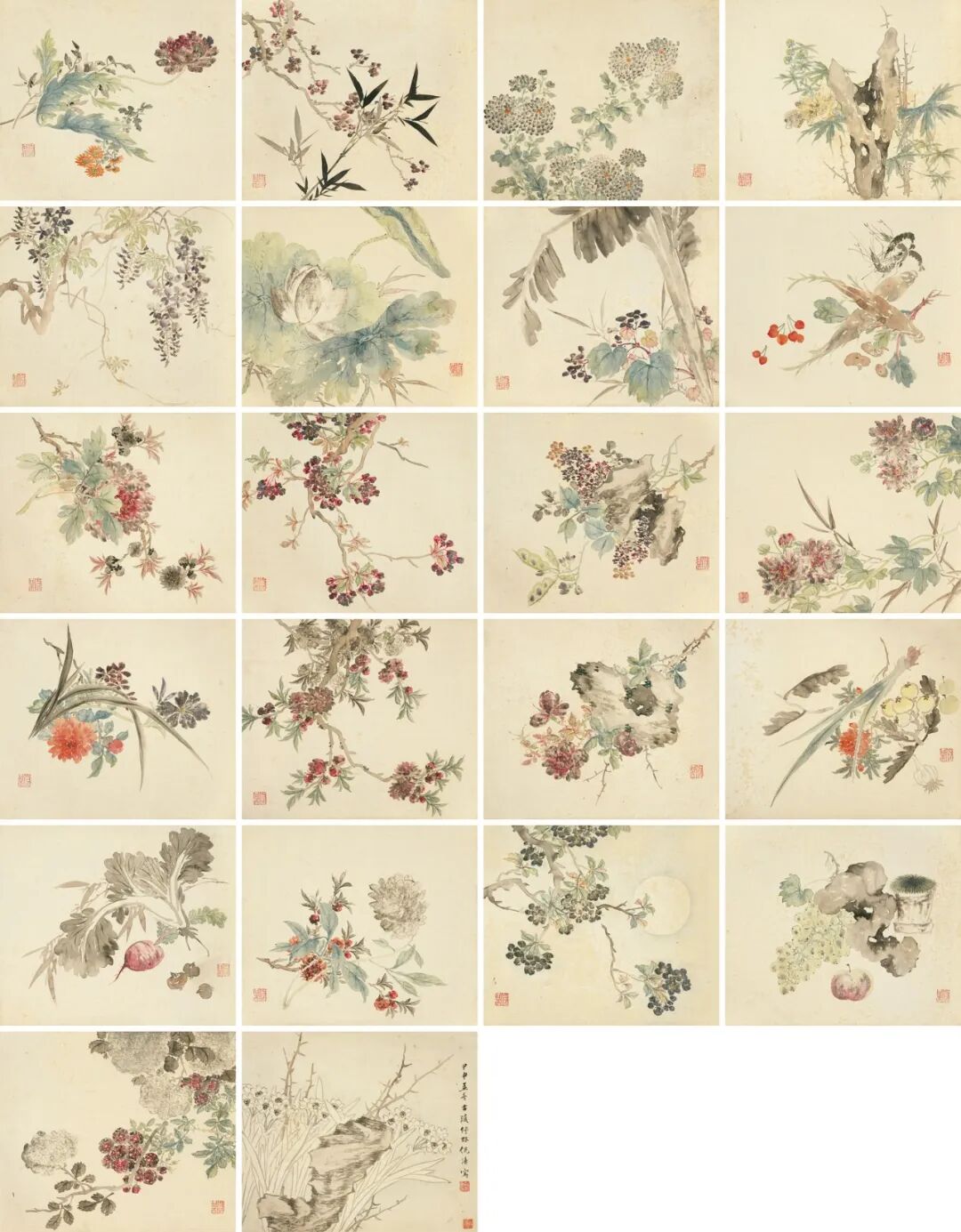 倪涛花卉果蔬册二十二开