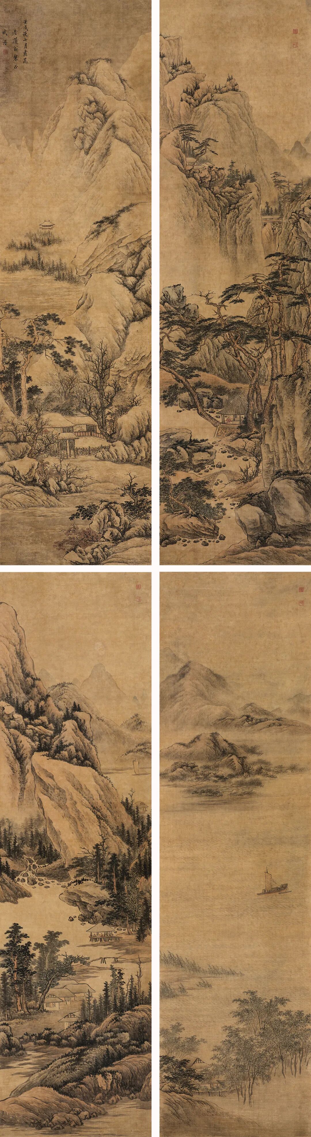 武丹山水四屏