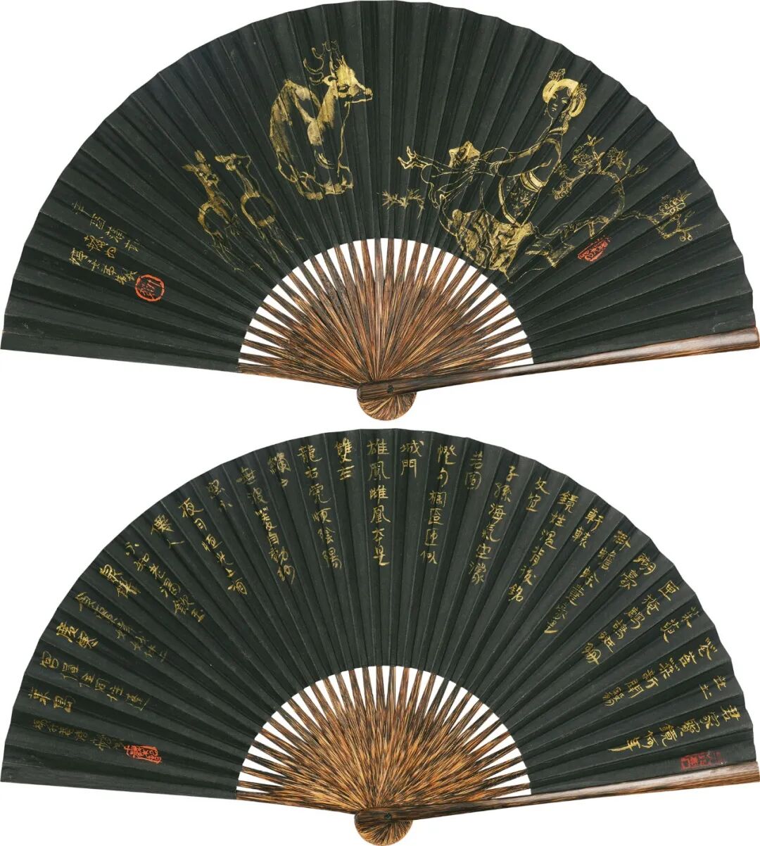 描金纸本 成扇 13×42cm×2
