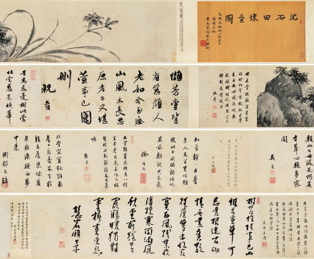 【钤印】沈氏启南(朱)、白石翁(白)、启南(朱)、石田(白)、吴郡(白)