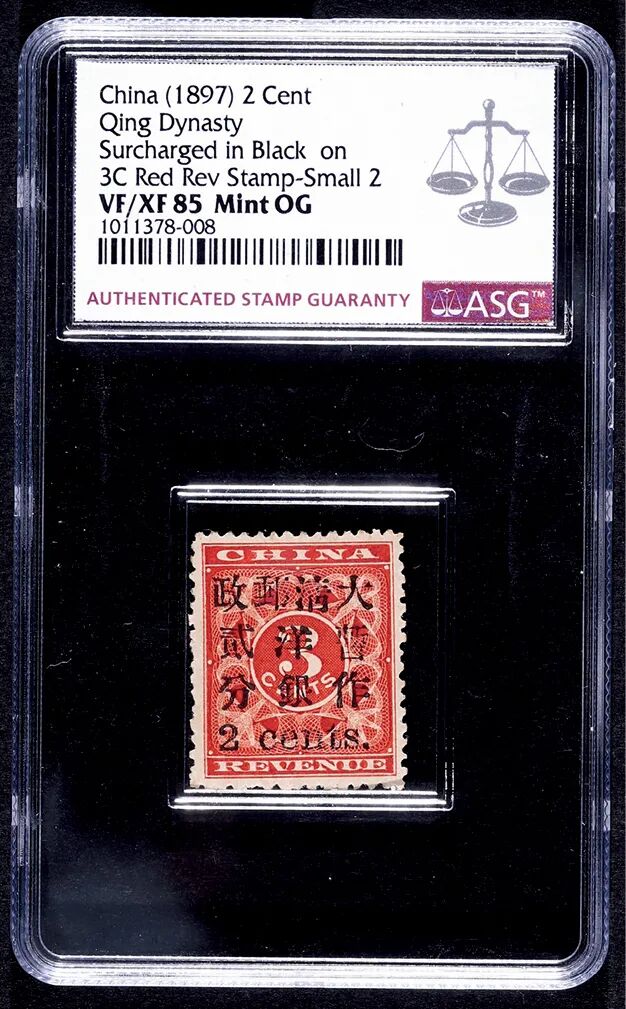 1897年红印花加盖小字2分新票一枚,ASG 85分