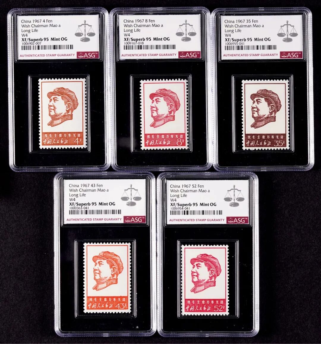 1967年文4毛主席万寿无疆新票全套5枚,ASG 95分