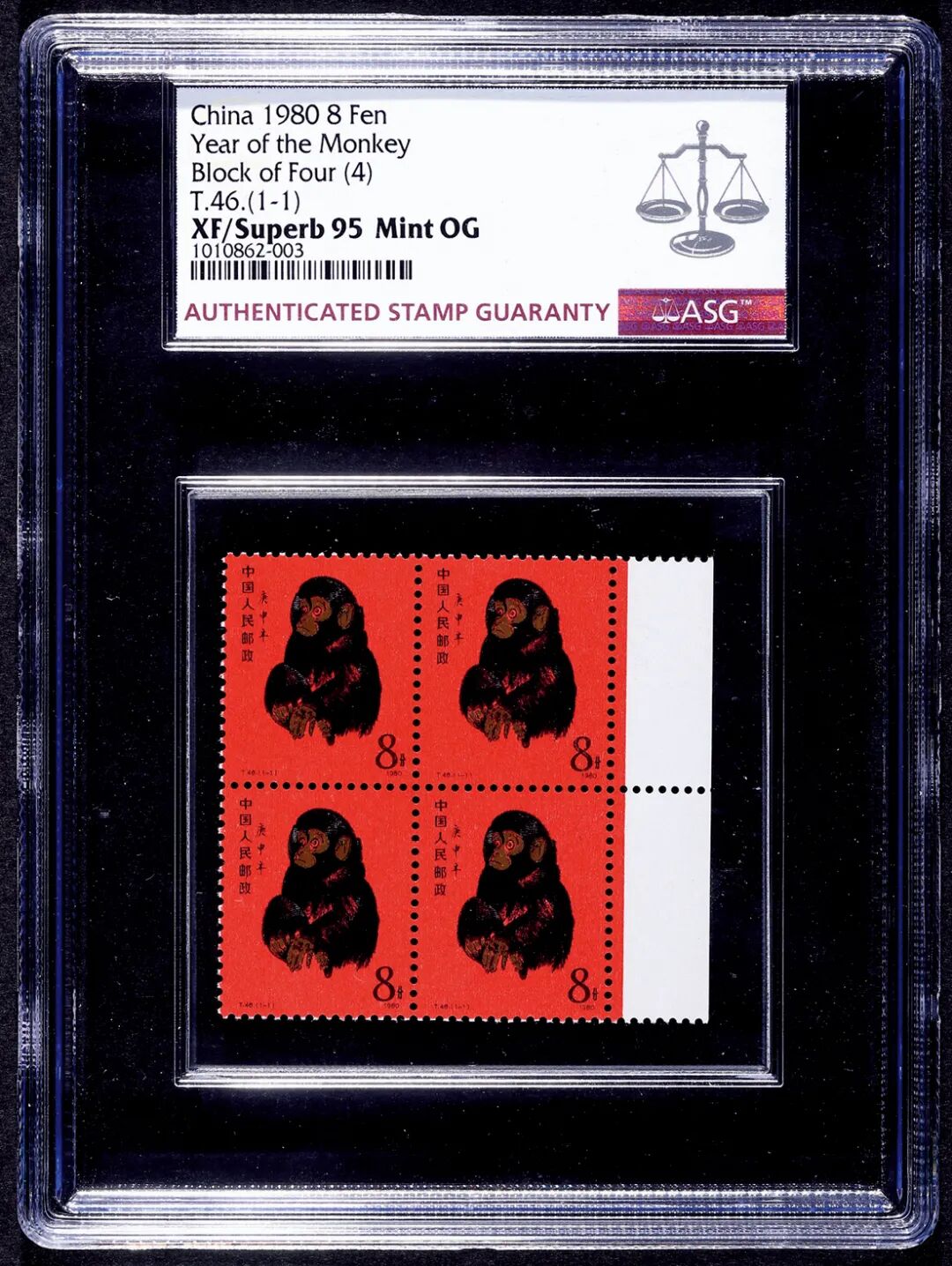 1980年T46庚申年猴8分新票四方连,带纸边 ASG 95分 ![]()