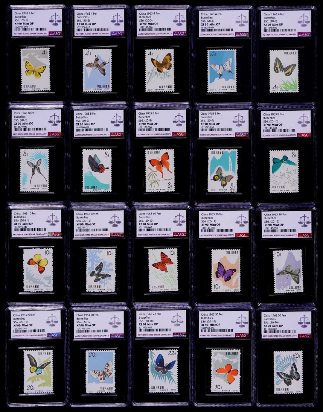 1963年特56蝴蝶新票全套20枚,ASG 90分