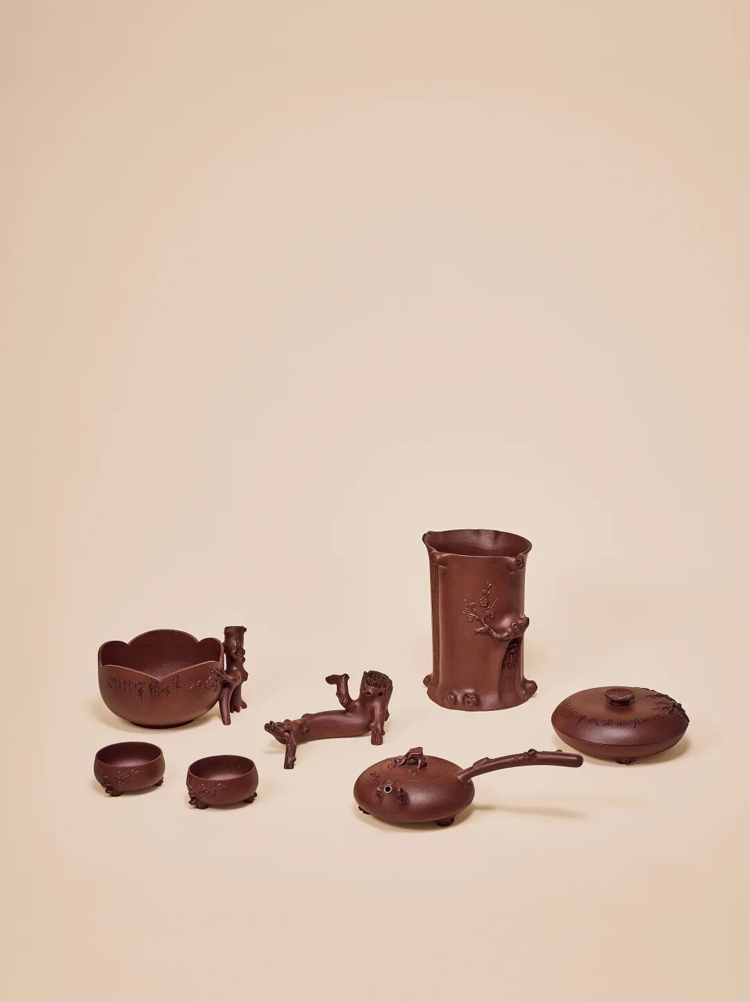 明末张岱在《陶庵梦忆》中记载紫砂:“直跻之商彝周鼎之列而毫无惭色”,足见时人对其推崇至极。紫砂作为一种极具表现力的材质,往往能突破质感的限制,表现苍古浑厚的气质,和书斋的陈设布置最为相宜。
