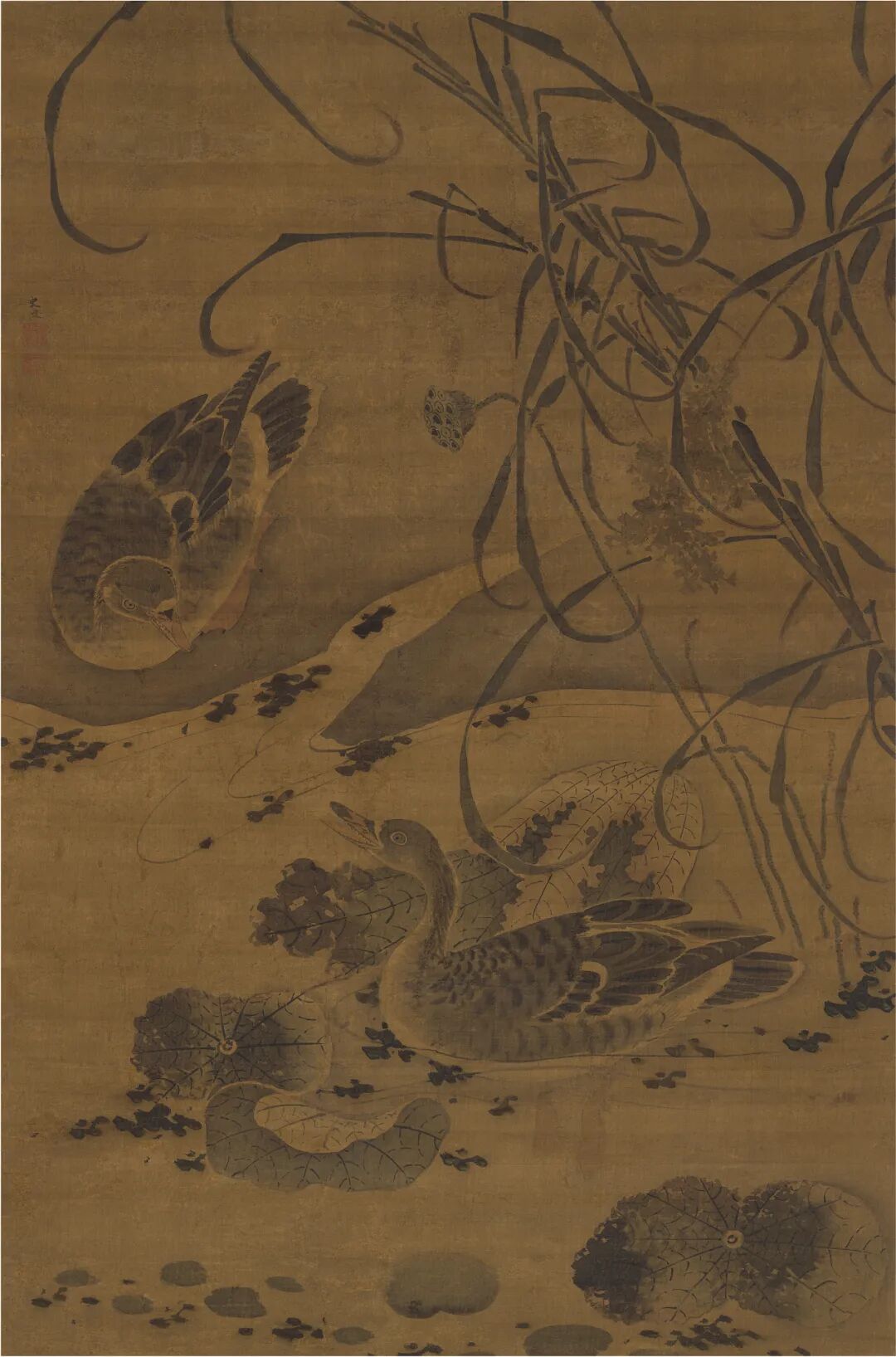 到了元朝,中日之间的禅宗交流和学习走向国际化的互通阶段,中国禅师经常受邀到日本创建禅寺,日本禅僧也常留学中国,有些甚至成为中国禅寺的住持,默庵灵渊(Mokuan Reien)便是代表之一。当时的日本正掀起一股“牧溪热”。牧溪死后,日本禅僧纷纷慕名而来,瞻仰他的法像,传承他的画艺,默庵灵渊也不例外,但只有默庵在日本享有“牧溪再世”的称誉。由于默庵等人的推崇,禅宗水墨画对日本室町时代以后的绘画产生了巨大影响。默庵灵渊和可翁仁贺被视为室町水墨画的创始人。