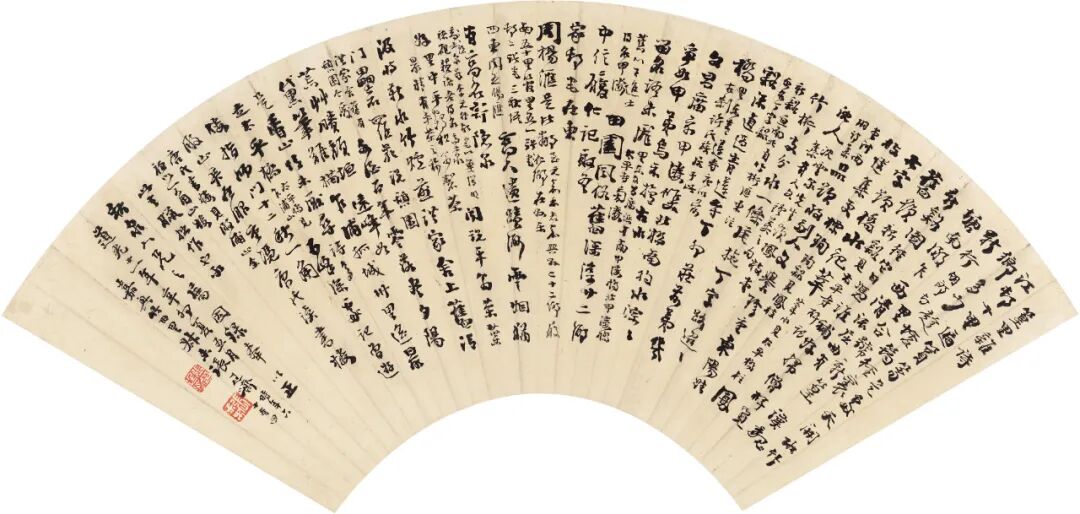 本卷用笔全用中锋,腕力惊人,如有神助,在保证楷书结体的同时,力求笔划的流畅与奔放,与另一件楷书南京博物院《山水并王维诗卷》完全一致。南博本早与本拍品十年之久,又尺寸稍宽,在这两个因素的基础上,我们粗略可勾连陈淳楷书风格的发展线条。