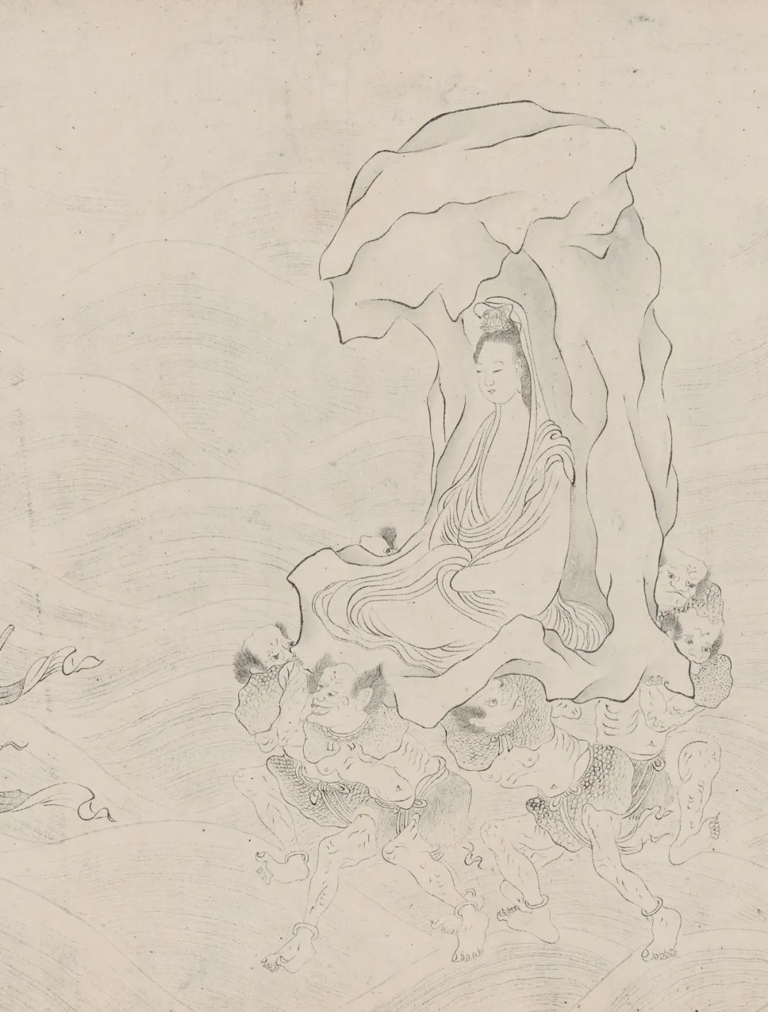 罗汉为释迦牟尼佛之得道弟子,寿尽前虽已修成正果却拒入涅盘,仍留世间守护佛法,教化度众。在上座部佛教中,罗汉为修行所能达到的最高果位,因其法力超凡,集万物智慧和灵性,脱离贪嗔痴妄,罗汉形象于宋代备受推崇,是以罗汉供养在寺院和信士之间也广为流行。日僧成寻于北宋神宗熙宁五年(1072年)的入宋日记《参天台五台山记》中曾记述,其抵达天台石桥这处罗汉显圣之地时,见到道场周围悬挂着十六罗汉图像。北宋最负盛名的文豪苏轼也是虔诚的罗汉信徒,其不仅在家中设罗汉供,还为十六罗汉图像题写赞词,并在文集中大量记载了罗汉应验的神迹。可见此一类型的罗汉画多为举行佛教法会仪式时所使用。