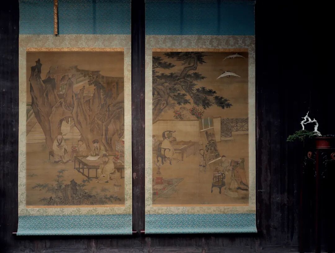 (右)文征明1558年作《水亭诗思图》南京博物院藏