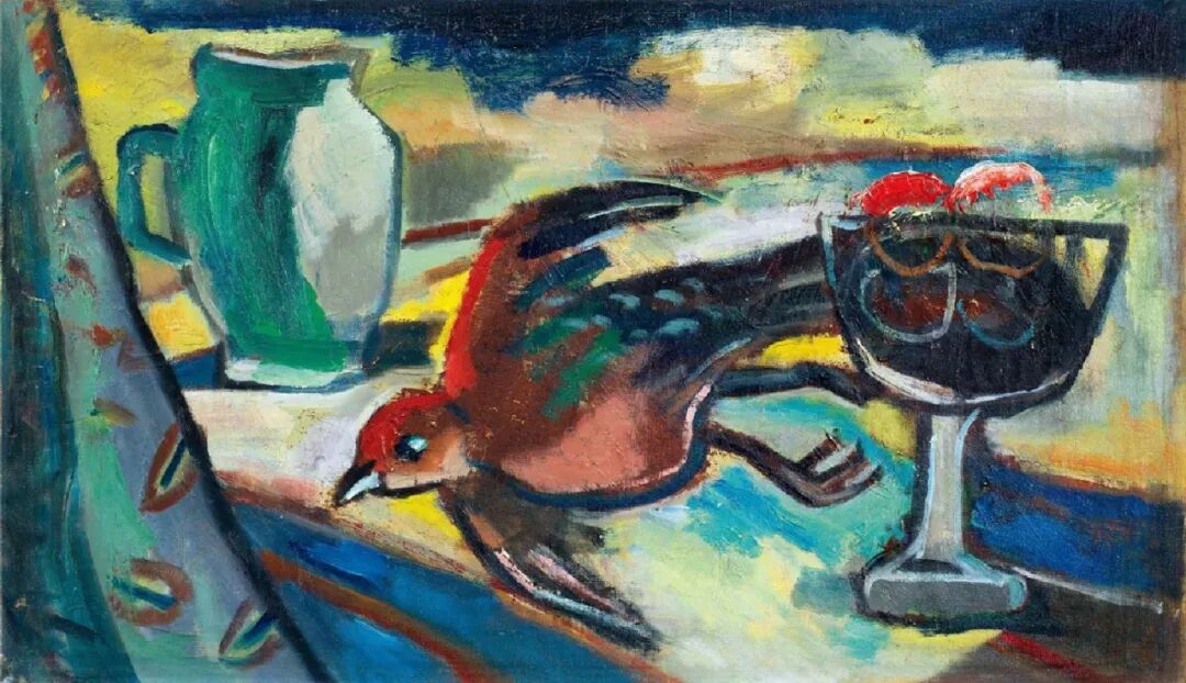林风眠(1900~1991)为张学良作 翠叶双鸟图