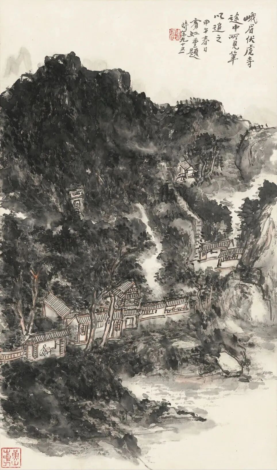 黄宾虹(1865~1955)九十一岁作峨眉伏虎寺图