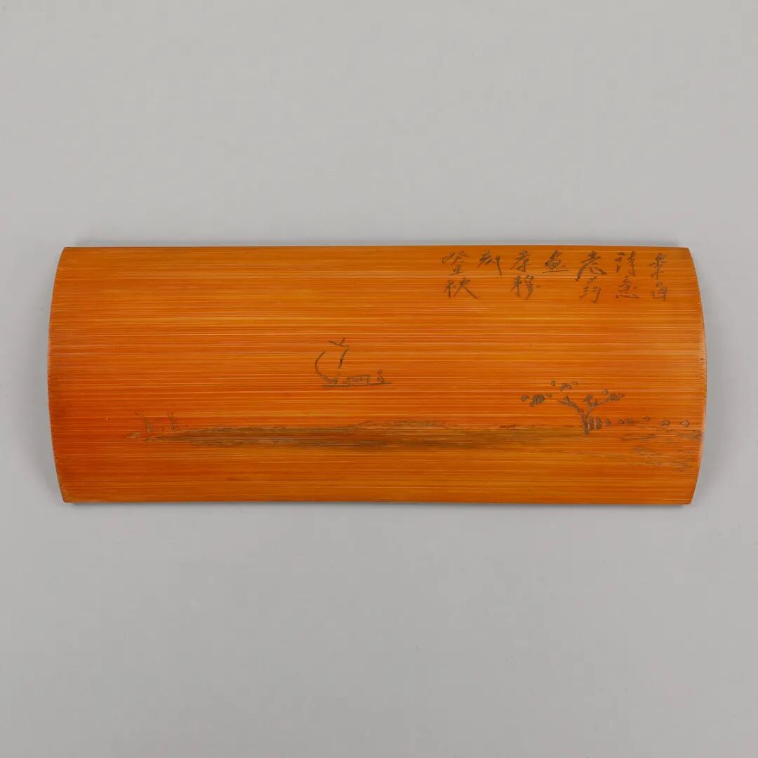 此件唐云构图时巧妙利用竹臂搁上自然竹斑。代表近景坡石,寥寥几笔将孤帆海阔之意结合徐孝穆之浅刻技艺表达出来,为唐云、徐孝穆合作精品。