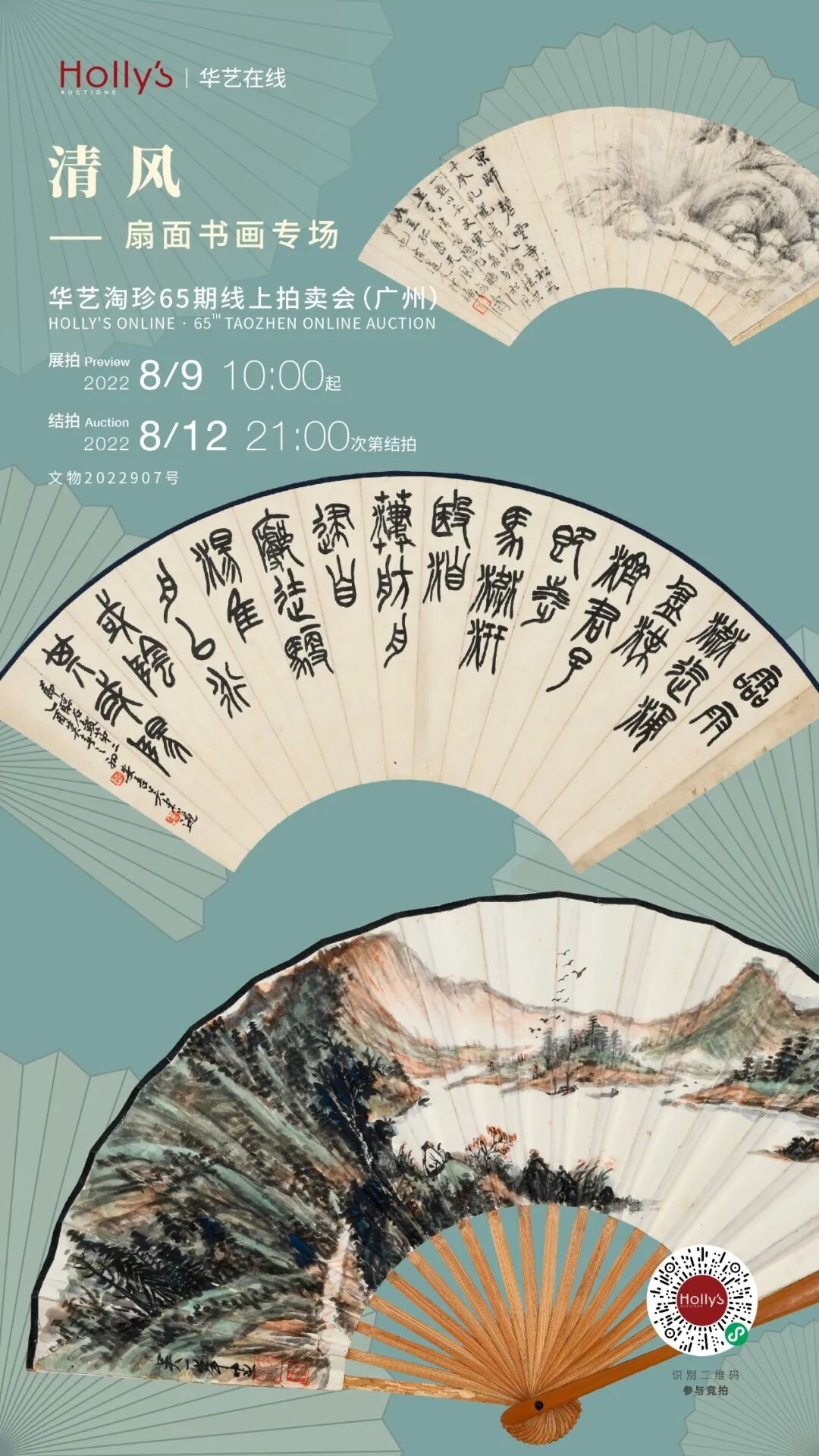 小扇引清秋,色墨盈尺,怀袖国风,扇面以小见大,方寸咫尺,容大千世界,形制特殊,集诗文、书画、篆刻、制扇技艺于一身,兼具工艺和书画之美。本专场汇集名家扇面精作十帧,由李瑞清扇画山水领衔,吴一峰、乔木等佳作亦堪品读。