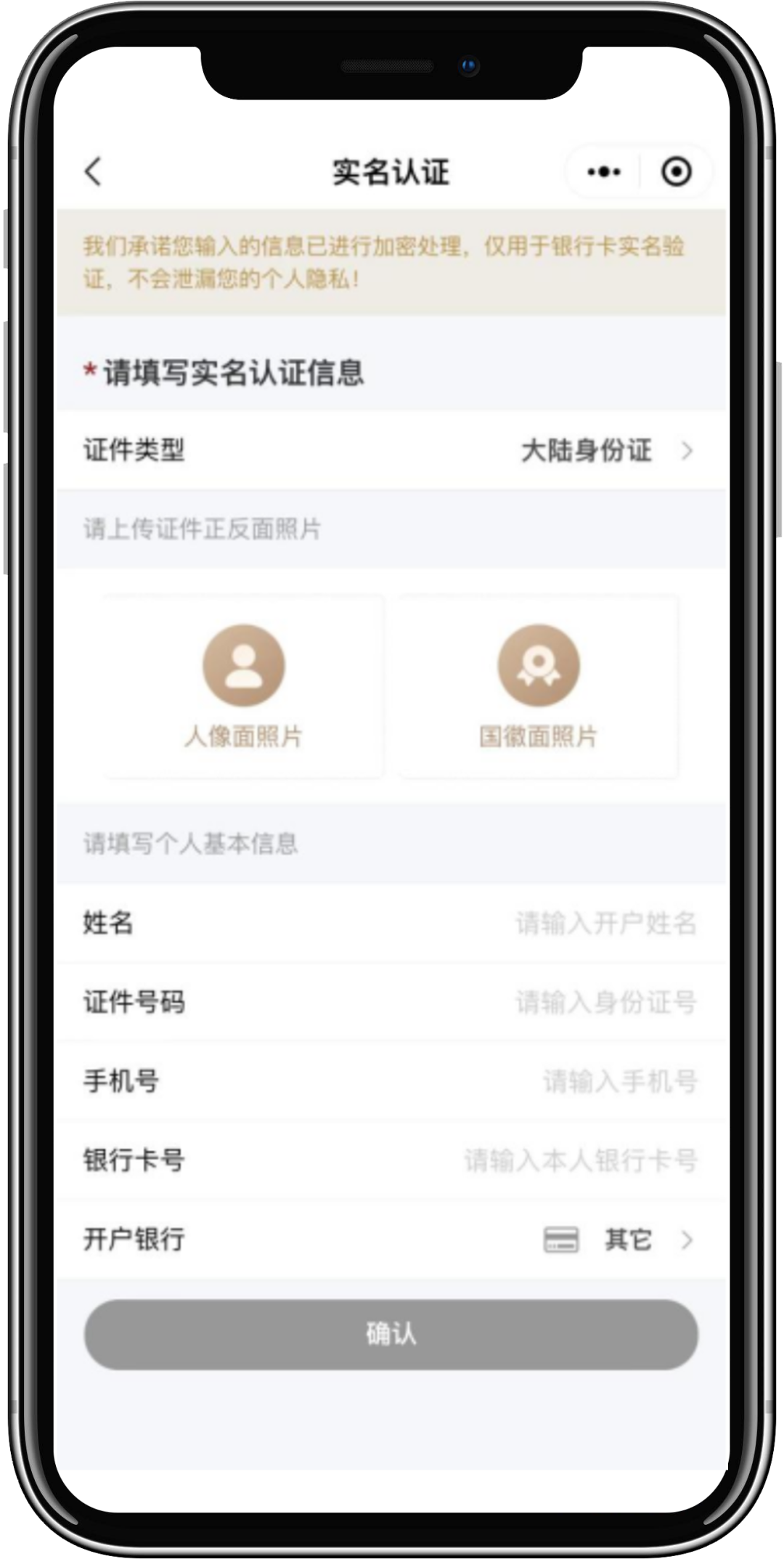 当用户选择证件类型为【大陆身份证】,提交信息后系统自动审核。
