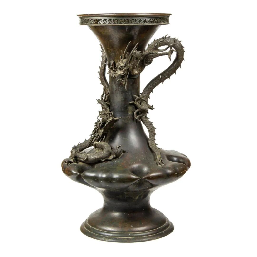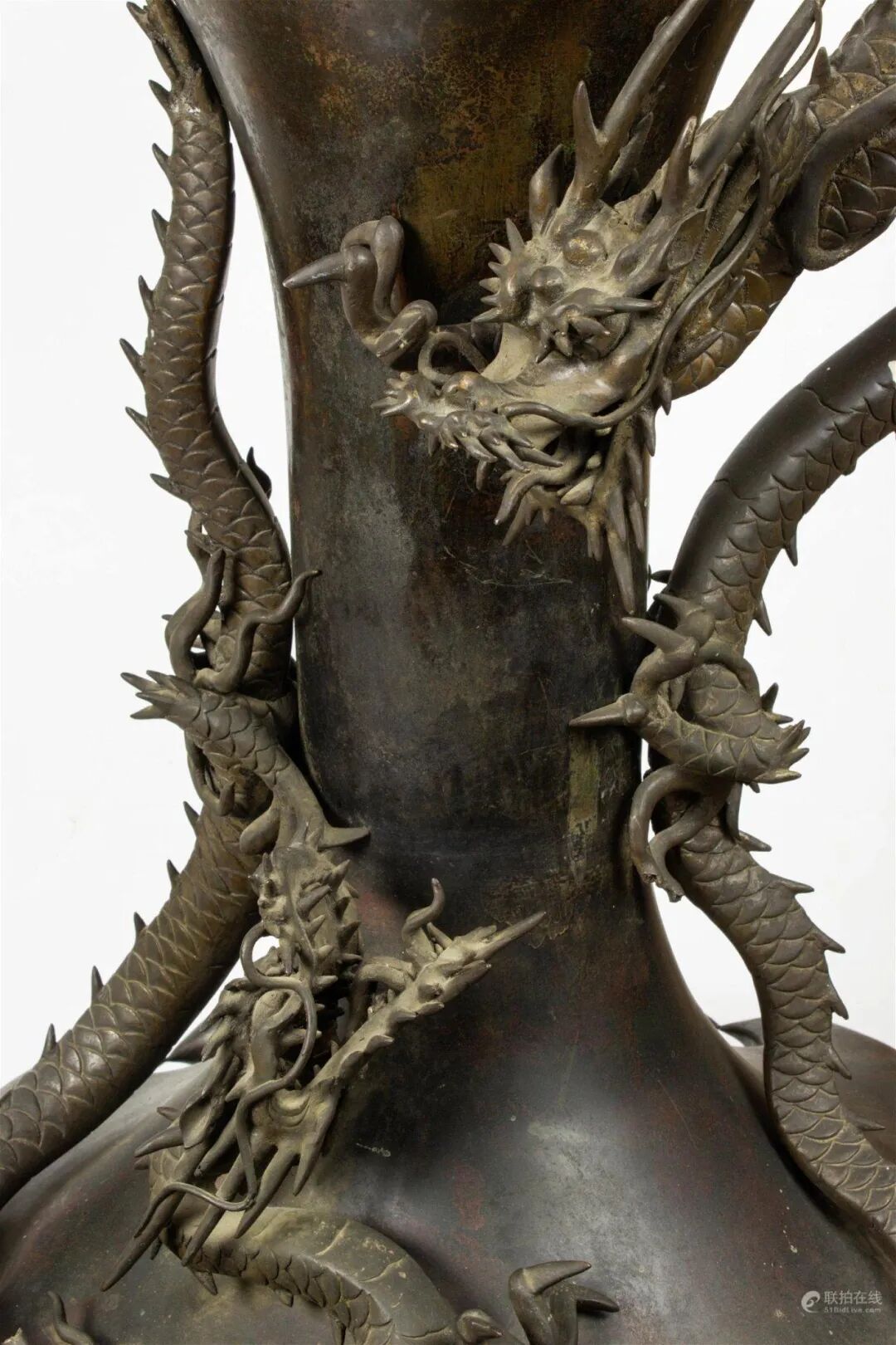本次拍卖将由两尊御制铜铸刻龙纹双耳活环方觚领衔。瓶腹与颈部各面均饰以云龙纹,铸造极其写实,纹路清晰鲜明,形象生动,活灵活现,雕刻精美,雄浑庄重,大气磅礴。一尊足下连座有「大清乾隆年造」款识,另一尊则书「大清嘉庆年造」款,这两尊方觚皆为1949年前后于日本东京购得。