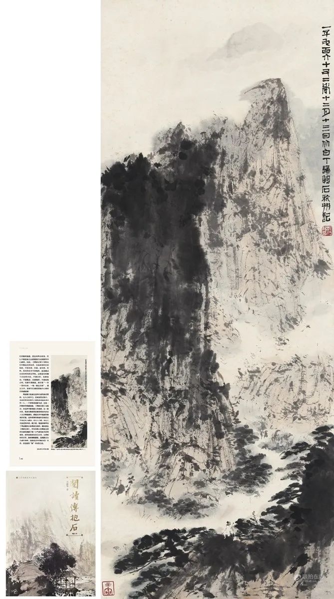 本幅黄宾虹最晚年创作的《峨眉伏虎寺》即脱胎受益于巴蜀之行,并直至九十一岁高龄仍积染不辍的代表之作。此时宾翁正处于眼疾手术后的翳始复明时期,画面中不仅流露出宾翁中年巴蜀写生之痕迹,还融汇了他晚年黑密厚重的创造性笔墨,不失为宾翁毕生创作之集大成者。