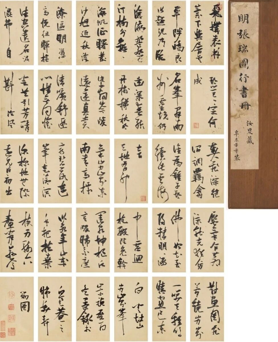 签条:明张瑞图行书册。汝畟藏。辛未年重装。