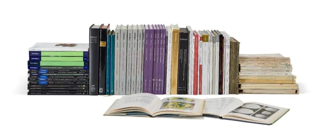 包括多本稀罕图录,如:胡惠春收藏、戴润斋收藏、Albright-Knox 艺术博物馆青铜品收藏、安思远收藏、克拉克收藏、Eugene Bernat 伉俪收藏、大都会艺术博物馆收藏中国艺术品、王季迁家族收藏、天民楼收藏、琼肯收藏、玫茵堂收藏、琵金顿收藏、Frederick Knight 收藏、叶义收藏、叶承耀收藏、户栗美术馆收藏,蘇富比二十年/三十年/四十年周年纪念图录、及《朱汤生六十年》等。