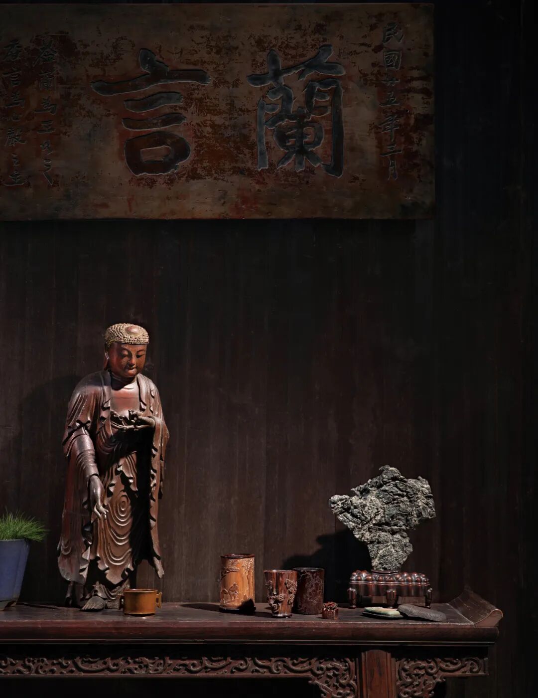 其次年份特殊。此壶制于康熙丁卯,陈鸣远前一年刚被《宜兴县志》“特为表之”。壶底款印“壶隐”传世罕见,据诗人金张编年体诗集,壶隐小印代表鸣远自惜声名坚持创新的态度。再次理论家集体注目。丁卯壶作为清初第一紫砂大家代表作,从稍晚于陈鸣远的张燕昌《阳羡陶说》始,几乎所有紫砂典籍均为之单辟笔墨。乾隆时,首部陶瓷史专著《陶说》的作者朱琰,直接成为丁卯壶收藏者。杨耑木因其博学修养,对文人砂壶铭文有先导之功。《阳羨名陶录》作者吴骞,搜集出版杨耑木的《药房心语》,即是被俞樾推荐的一部饮具之书。吴骞对陈鸣远的推介有目共睹,后又授业陈曼生。可以说,由杨耑木引导,鸣远探索切器、切用、切怀之壶铭,经过吴骞理论化概括,成为后续曼生壶铭之滥觞。最后为收藏理念。丁卯壶备受历代藏家瞩目,名孚中外。吴大澂以此厚礼,敬赠何绍基家族,换得其父墓志书法,褚德彝特别亲拓亲题转赠经亨颐堂兄。龚心钊侧重流传考据,附以精美紫檀函盒钤印题签,将自己与往届藏家比肩,彰显跨时代的品味契合。其物中见人的鉴藏理念影响深远。华藏宝相·历代佛教艺术专场