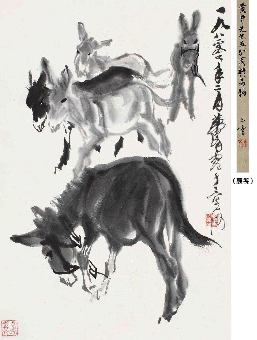 题签:黄胄先生五驴图精品轴。玉麟。钤印:宋玉麟印