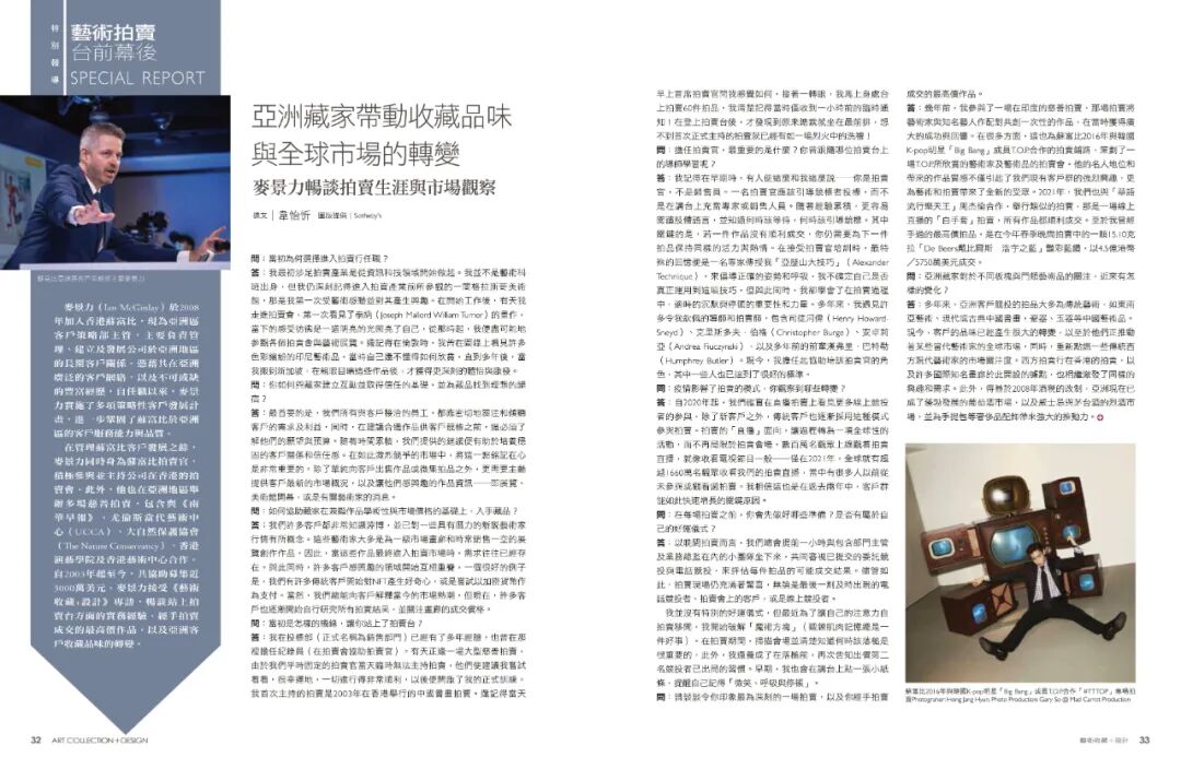 答:自2020年起,我们确实在直播拍卖上看见更多线上竞投者的参与,除了新客户之外,传统客户也逐渐采用这种模式参与拍卖。拍卖的「直播」面向,让过程转为一项全球性的活动,而不再局限于拍卖会场,数百万名观众上线观看拍卖直播,就像收看电视节目一般──仅在2021年,全球就有超越1660万名观众收看我们的拍卖直播,当中有很多人以前从未参与或观看过拍卖。我相信这也是在过去两年中,客户群能如此快速增长的关键原因。