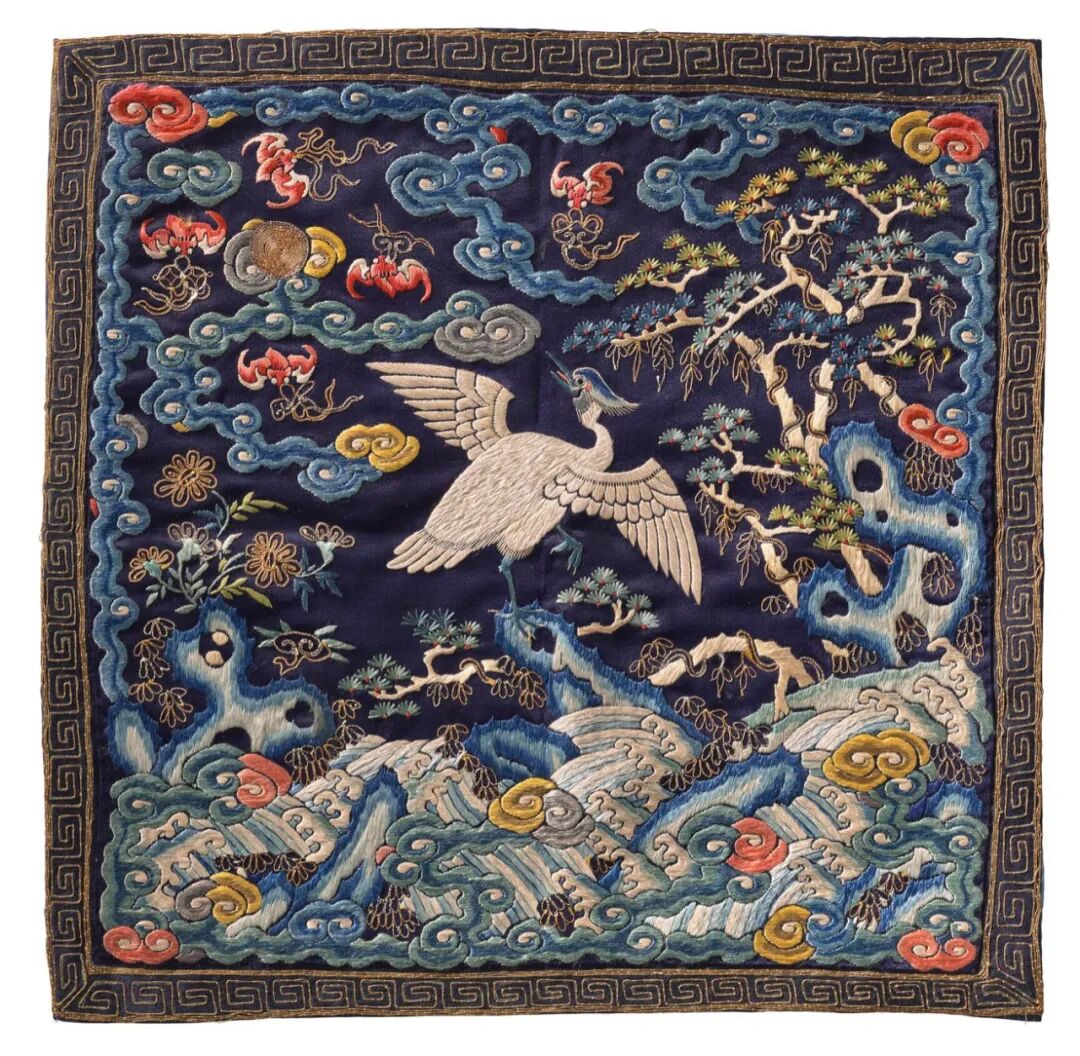 彩绣蓝地六品文官鹭鸶补子