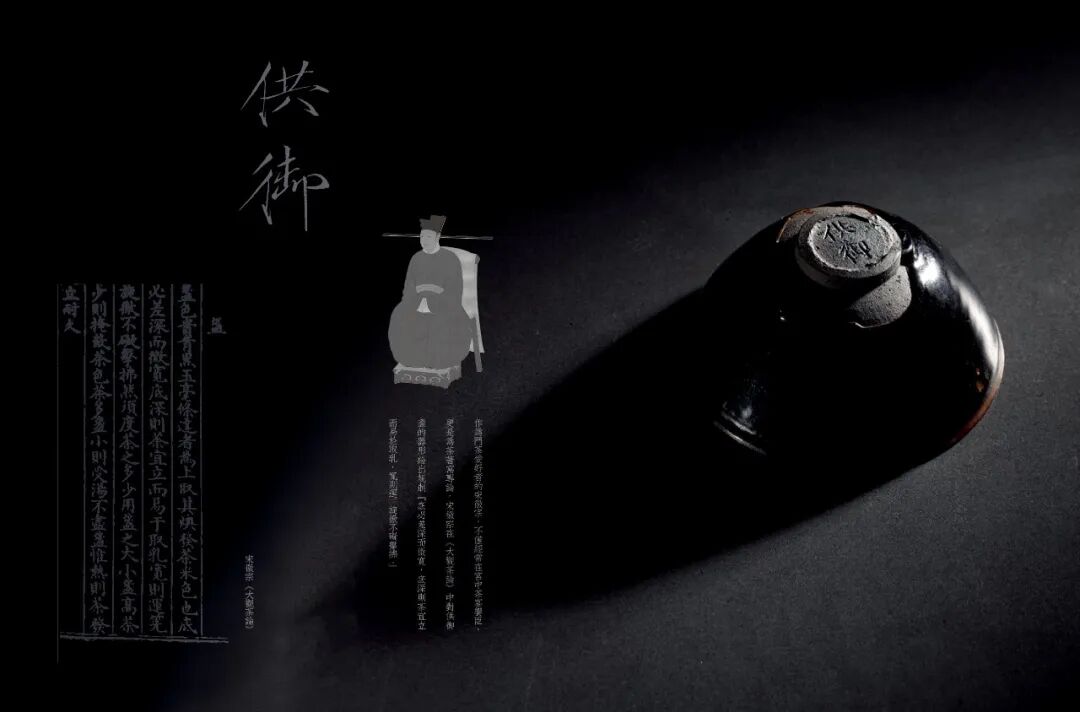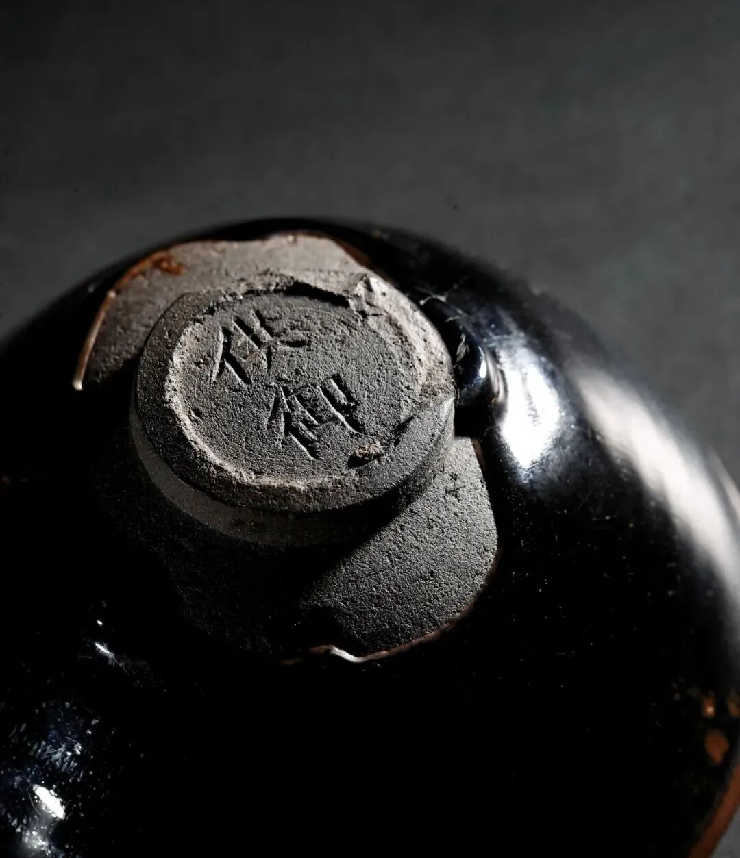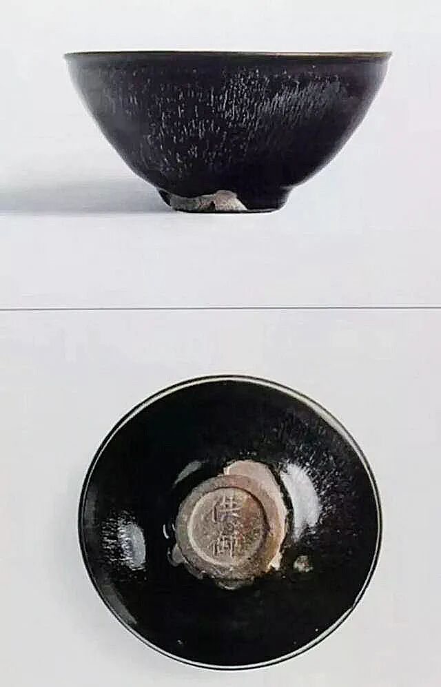 “供御”即供予御用之物,进上之盏是也。作为饮茶器具的极品,建窑所产的黑釉茶盏不仅供应民间,还为宫廷定烧成为皇室御用茶盏。这些专供宫廷使用的建盏在制作上最为精细,其器型斑纹、在做工上皆属一流,供御盏的盏底常刻“供御”字铭。![]()