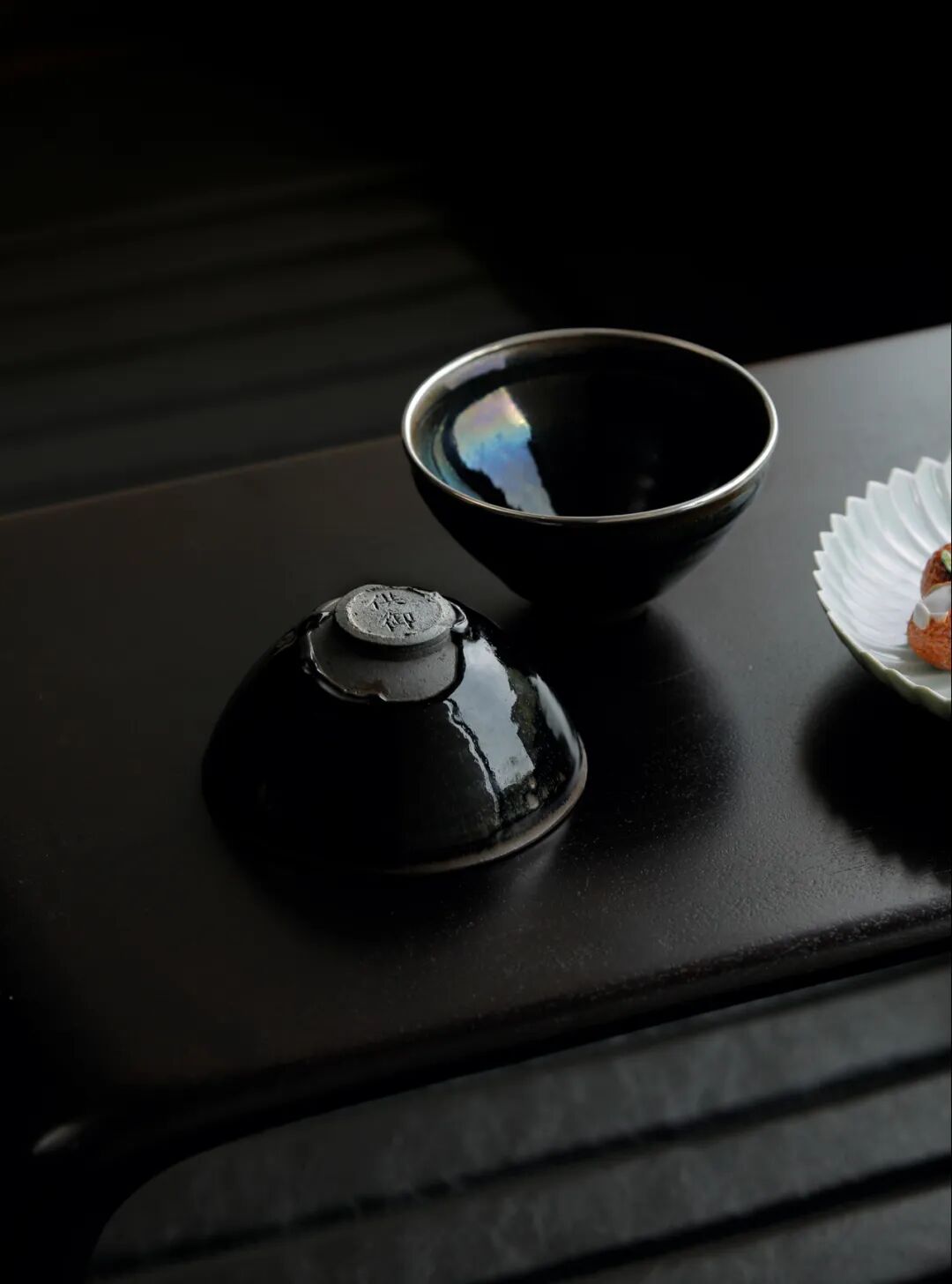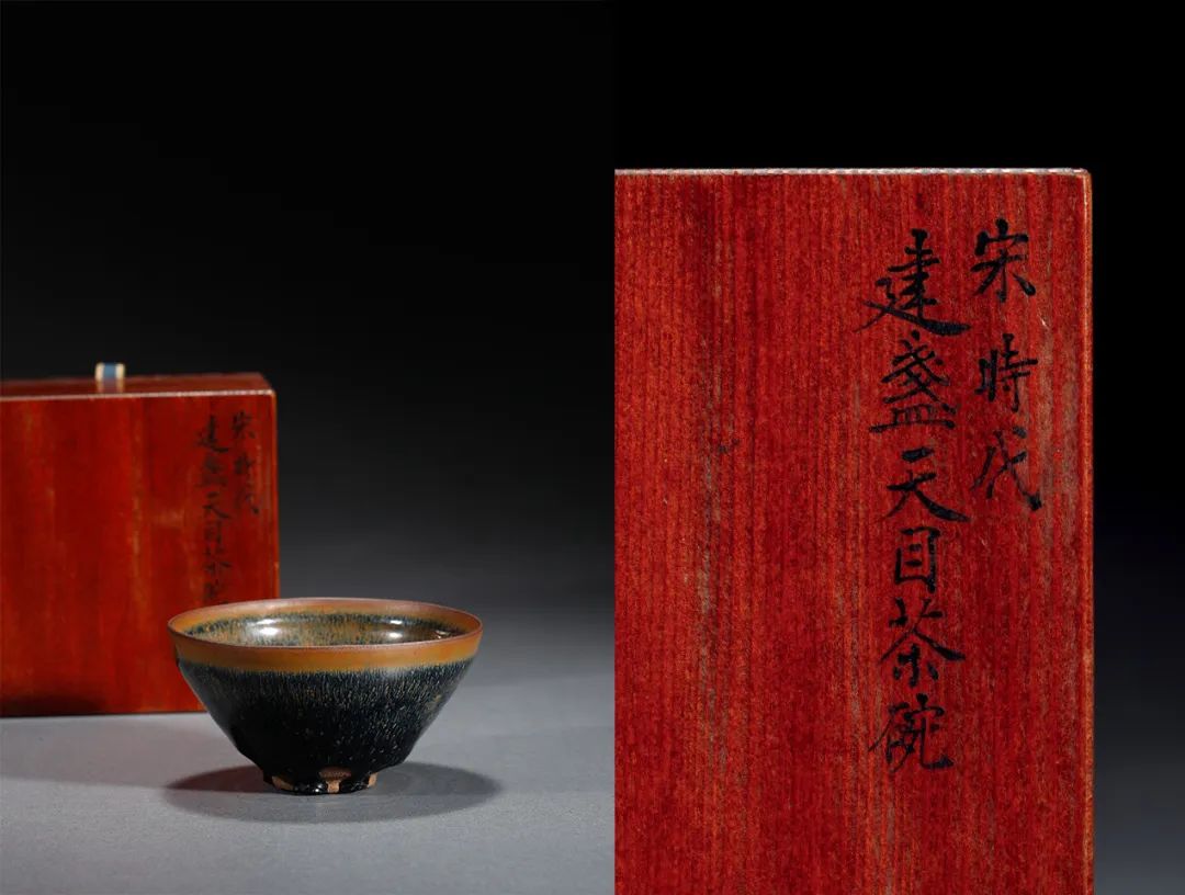 建窑黑釉茶盌之赏鉴,亦与日本茶道宗师与收藏家息息相关,在日本,宋代建窑茶盏广得崇敬爱慕,其日文名称“天目”也随之流传千里,成为现今通称此类黑釉器盏之名。
