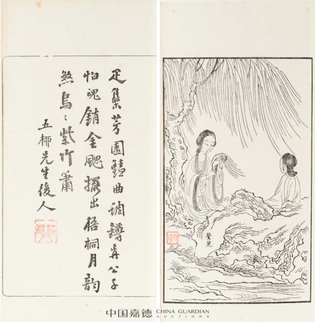 “古籍文献”专场包括明清古籍、文献档案、印谱笺纸等,品类丰富,资料性强。其中,明弘治十三年(1500)项经刻本《陶学士先生文集》白棉纸精印,为明中早期刻本珍贵实物标本。《红楼梦图咏》内收宝玉、黛玉、宝钗、元春、王熙凤、迎春等人55名,前图后赞,为清代版画名刻。