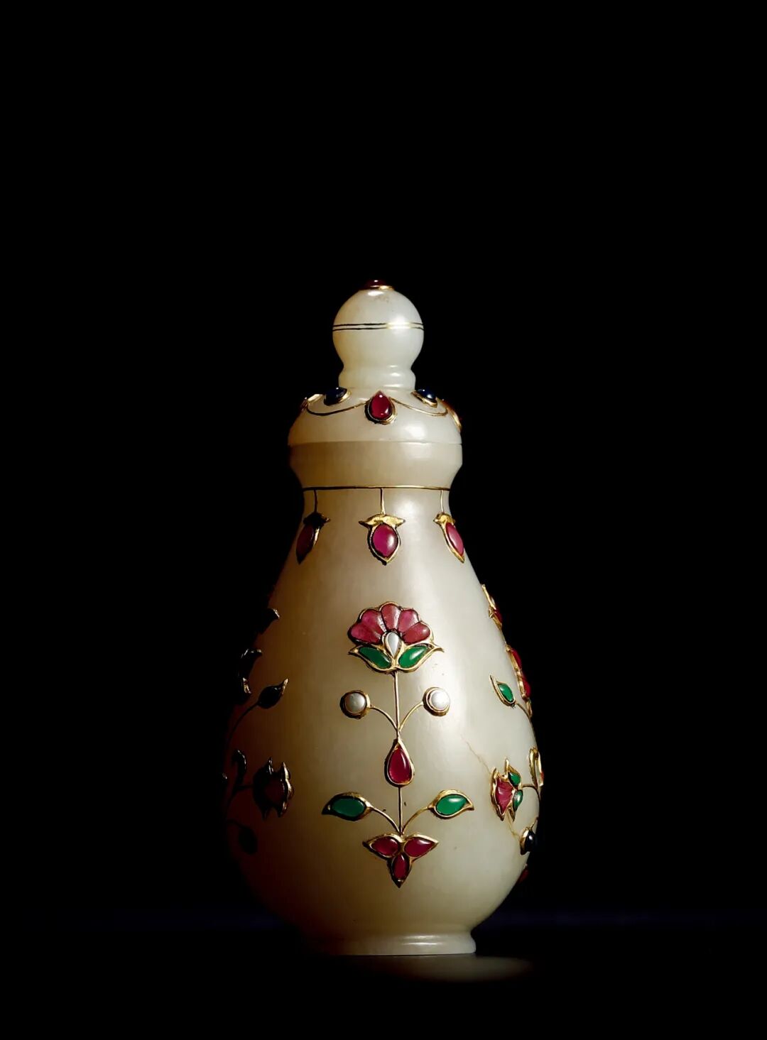 清乾隆·白玉嵌宝花卉纹痕都斯坦风格舍利瓶