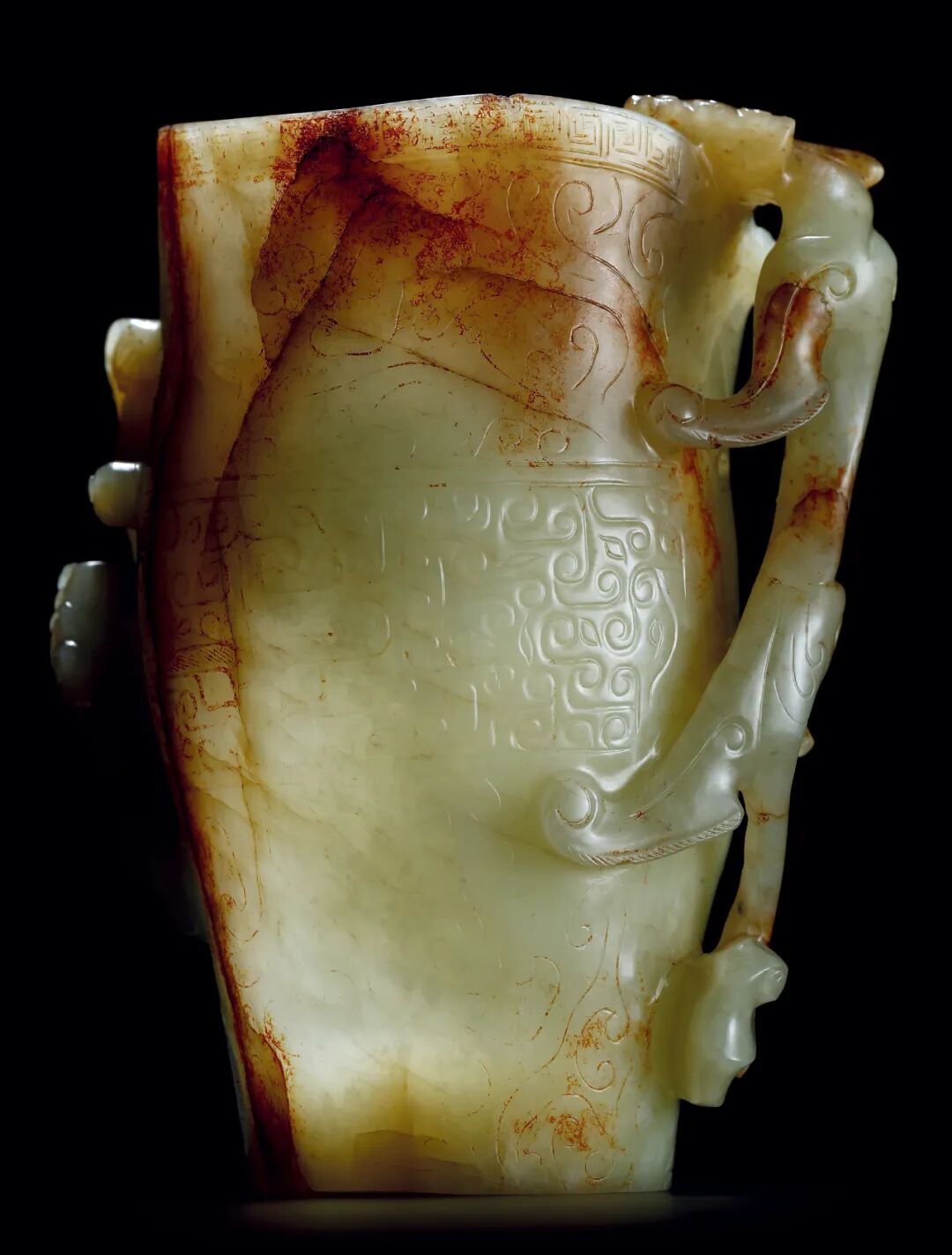 参阅:故宫藏青玉四耳活环夔纹壶。