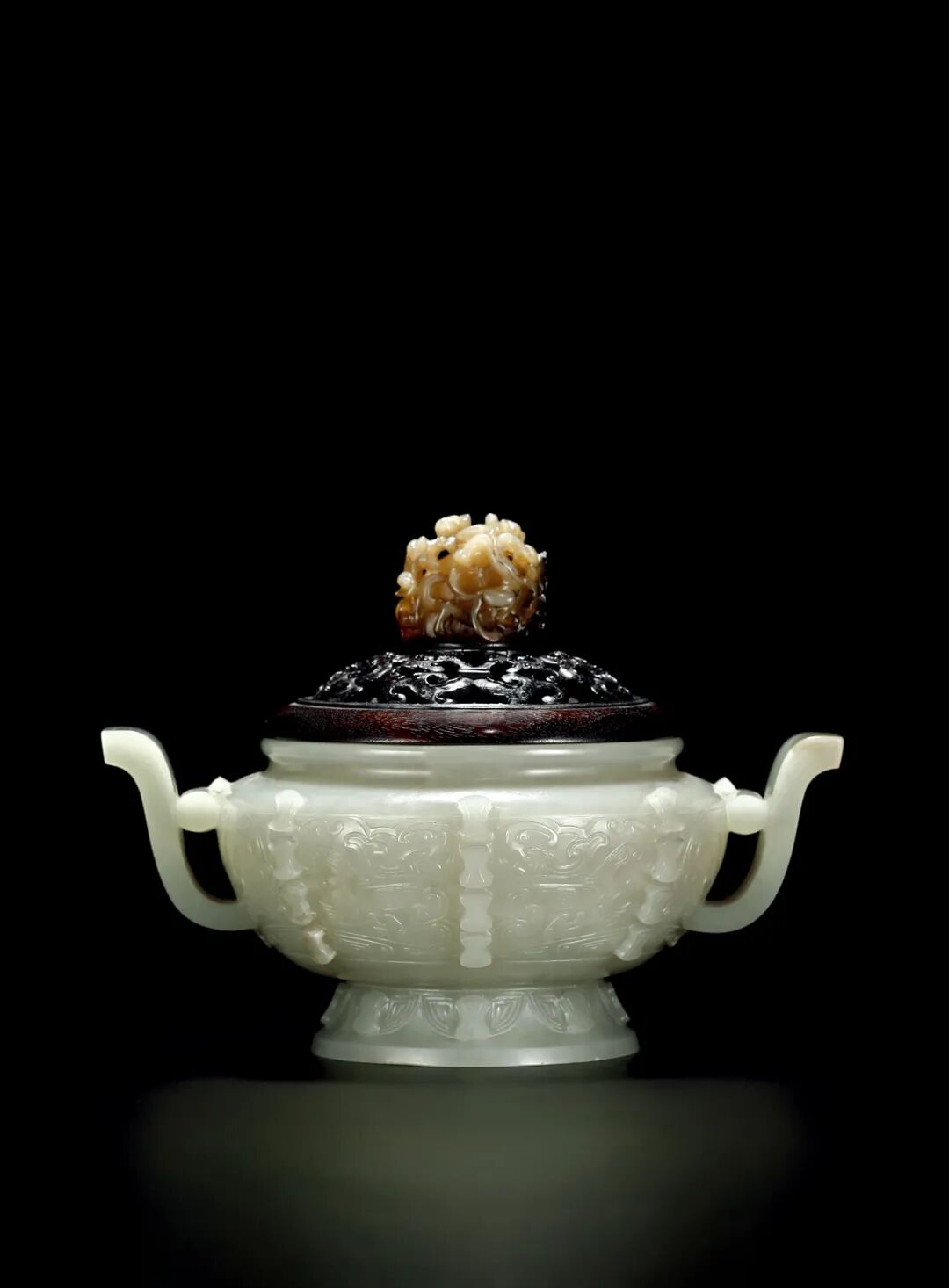 清乾隆·白玉出戟银铤纹朝冠耳熏炉