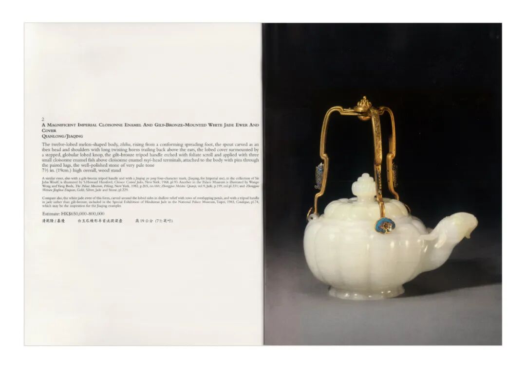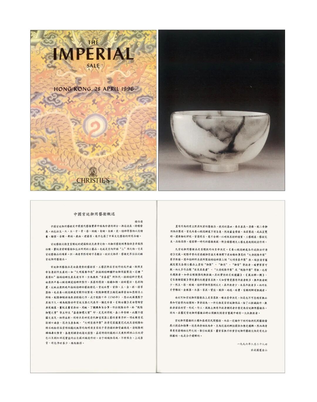 该文出自《中国宫廷御用艺术专场》,香港佳士得,1996年4月28日内页。此文由已故原故宫博物院副院长、玉器及玉文化研究专家杨伯达先生作序。