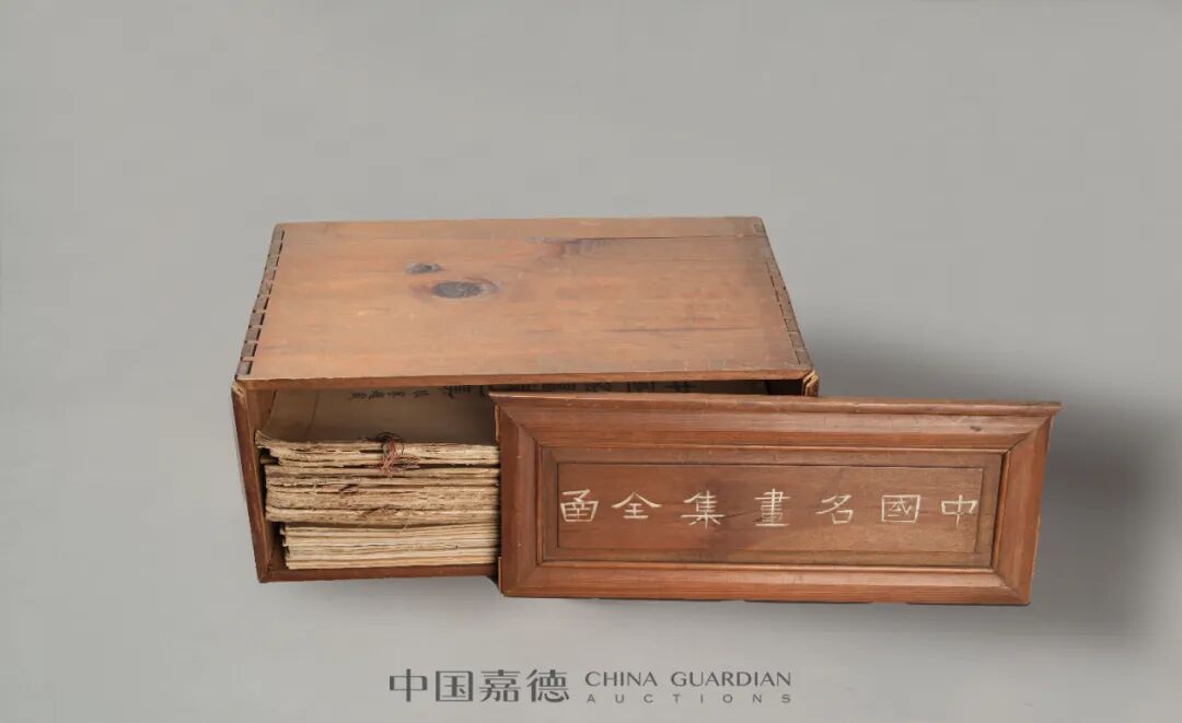 是书卷首清光绪己卯年(1879)淮浦居士序文,内收通灵宝玉、宝玉、黛玉、宝钗、元春、探春、惜春、史湘云、妙玉、王熙凤、迎春等人55名,前图后赞。底本系清末著名画家改琦应李光禄之邀游上海时所绘,李氏喜爱至极,延请徐渭仁、吴荣光等众多名家为之题咏。所绘人物一颦一笑间皆神态逼肖,秀逸潇洒,各臻其妙,且钤改琦印鉴多次。此书为清代版画名刻,入选《中国美术全集版画卷》。《中国名画集》内收唐宋以来各大家之名画真迹,原画深藏於故宫或大收藏家之手,几经战乱,不少真迹已失踪,而此套画集可见原画一斑。拍品附原木箱,可赏可读,资料性极强。