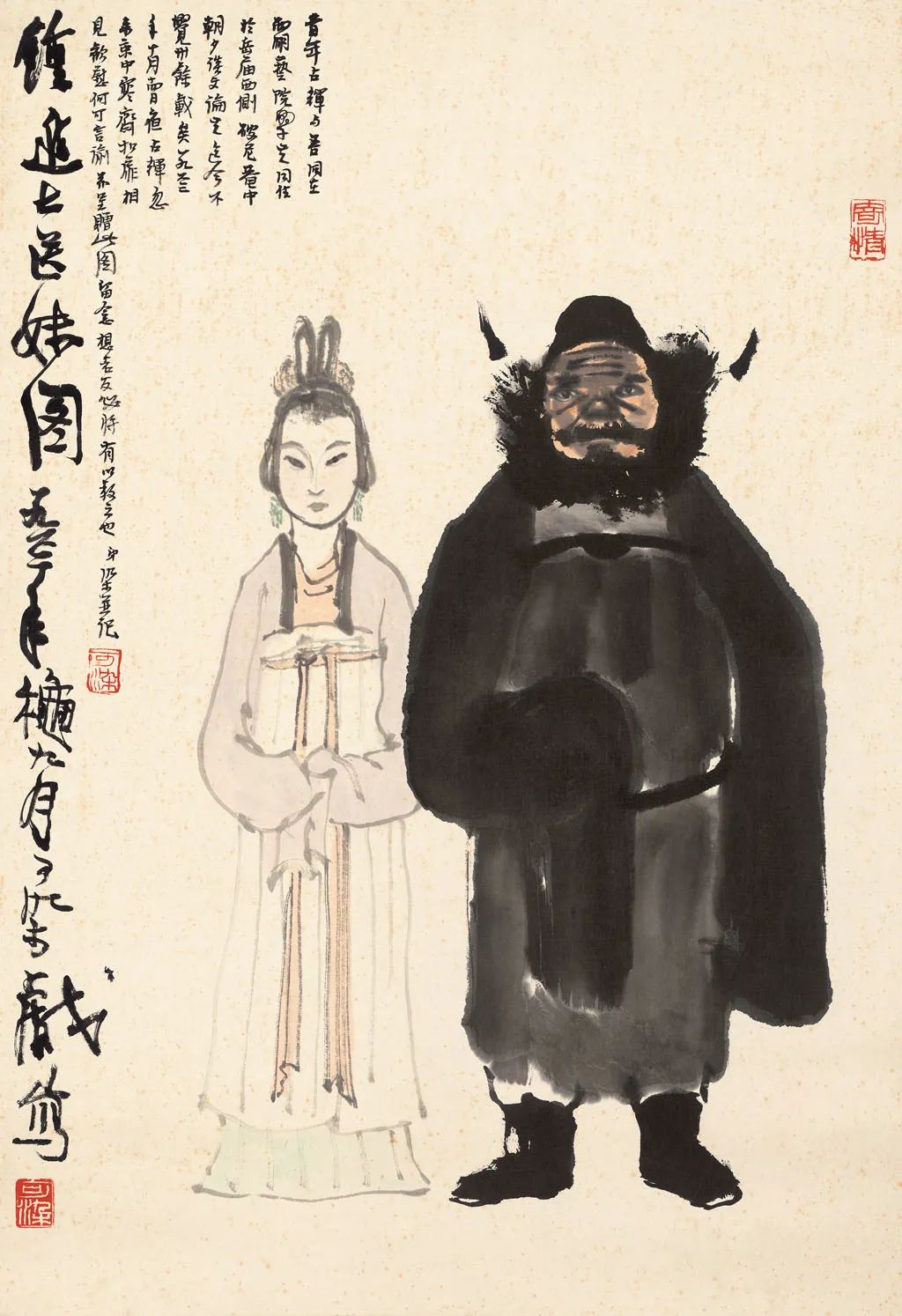 《钟馗戏鬼》是李可染1940年代晚期画作,是李氏人物画之逸品。在1949年之前,人物画是李可染作品的重要部分,而钟馗又是李可染人物画中的“重中之重”,早在1930年代,李可染就以一幅《钟馗》参加第二届全国美展,在艺坛崭露头角。