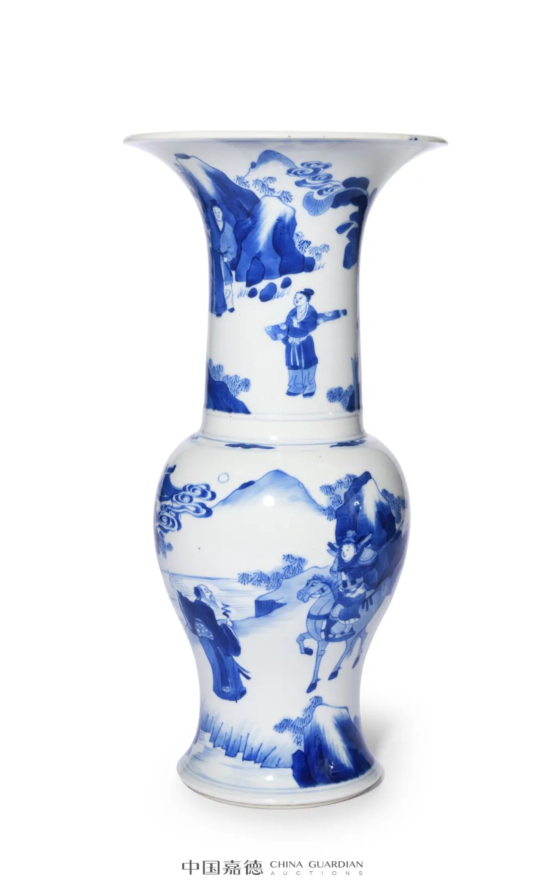 清康熙 青花三国演义之陆逊问津人物故事图凤尾尊