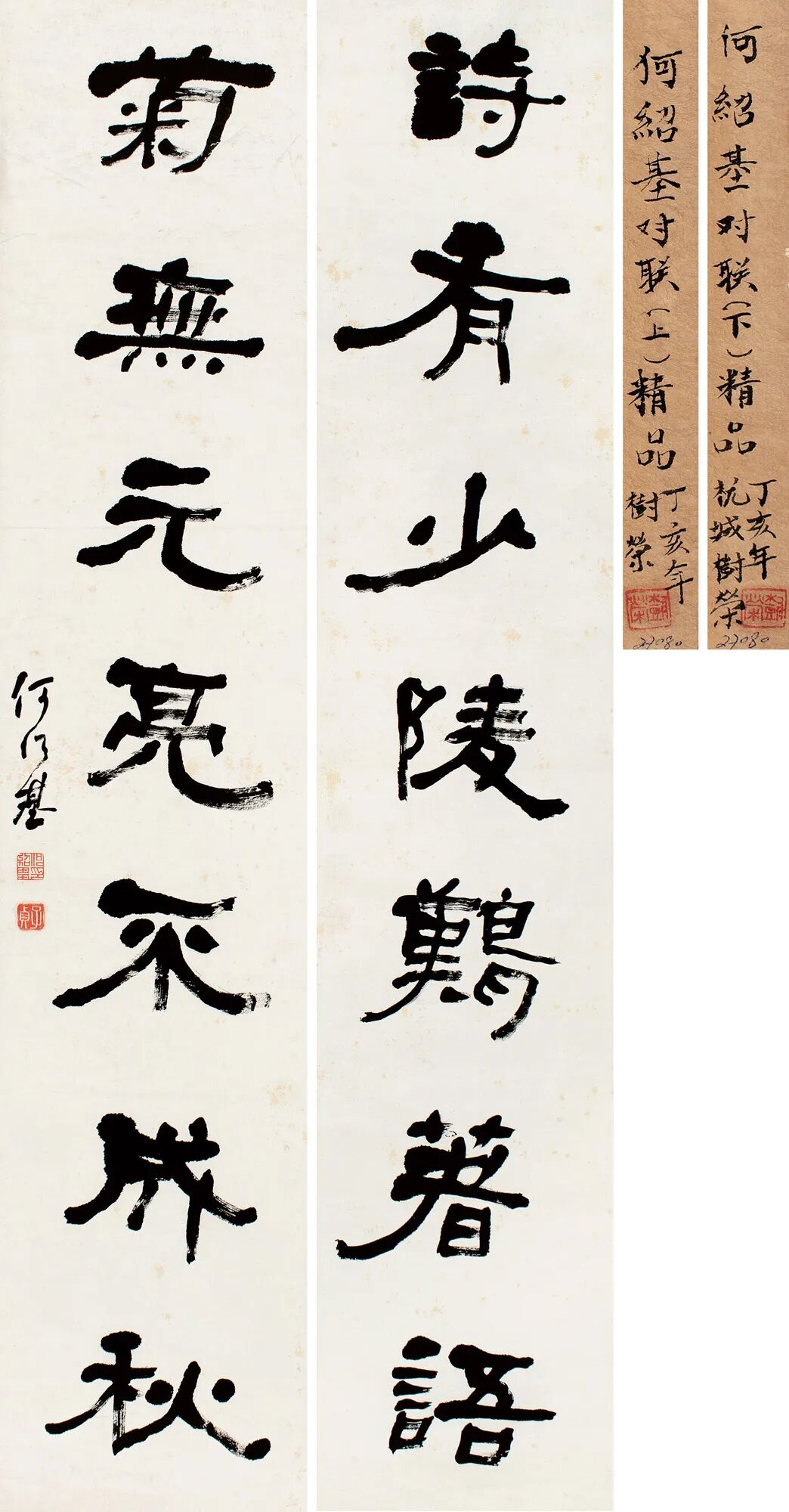 题签:何绍基对联精品。丁亥年,树荣。钤印:树荣