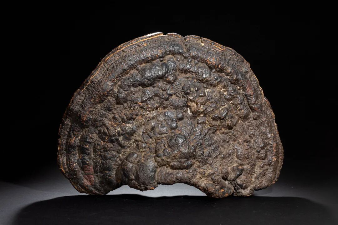 此天然灵芝,形体硕大,层层叠叠,色泽黝黑。在大灵芝的背面取平整处,刻乾隆皇帝甲午御制诗《咏芝屏》。故宫收藏有清乾隆紫檀嵌灵芝大插屏,同样阴刻着乾隆皇帝的《咏芝屏》,被视为清宫极品。