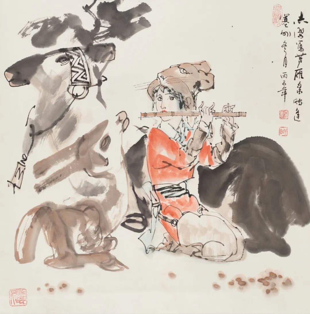 刘继卣(1918-1983)天津市人,近现代中国画家中少有的工笔白描、重彩、小写意、大写意俱能的画家,题材也非常全面,除人物、动物外,也兼擅花鸟、山水。尤其以他的工笔人物画和写意走兽画的成就最为突出。