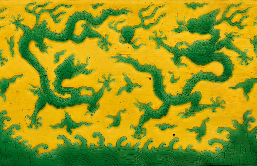 维多利亚与阿尔伯特博物馆藏嘉靖黄地绿彩龙纹砖