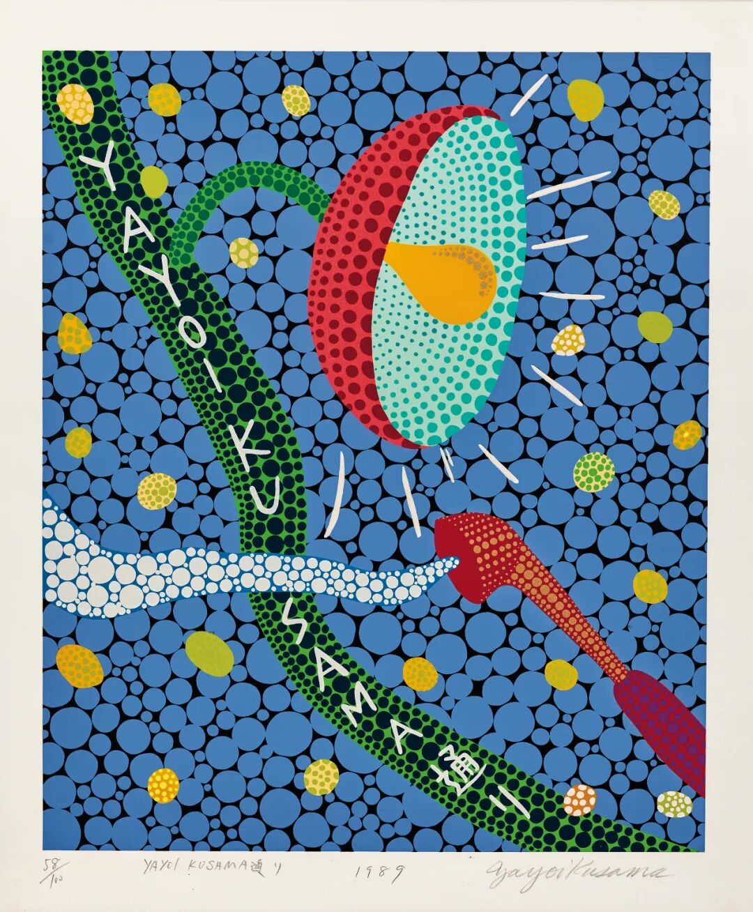 Screenprint丨45.4 × 37.5 cm;53× 45.3 cm丨Edition: 58/100丨Executed in 19892017年,《草间弥生全版画1979-2017》,阿部出版株式会社,东京,第90页2020年10月13日,伦敦苏富比拍卖会,拍品编号6