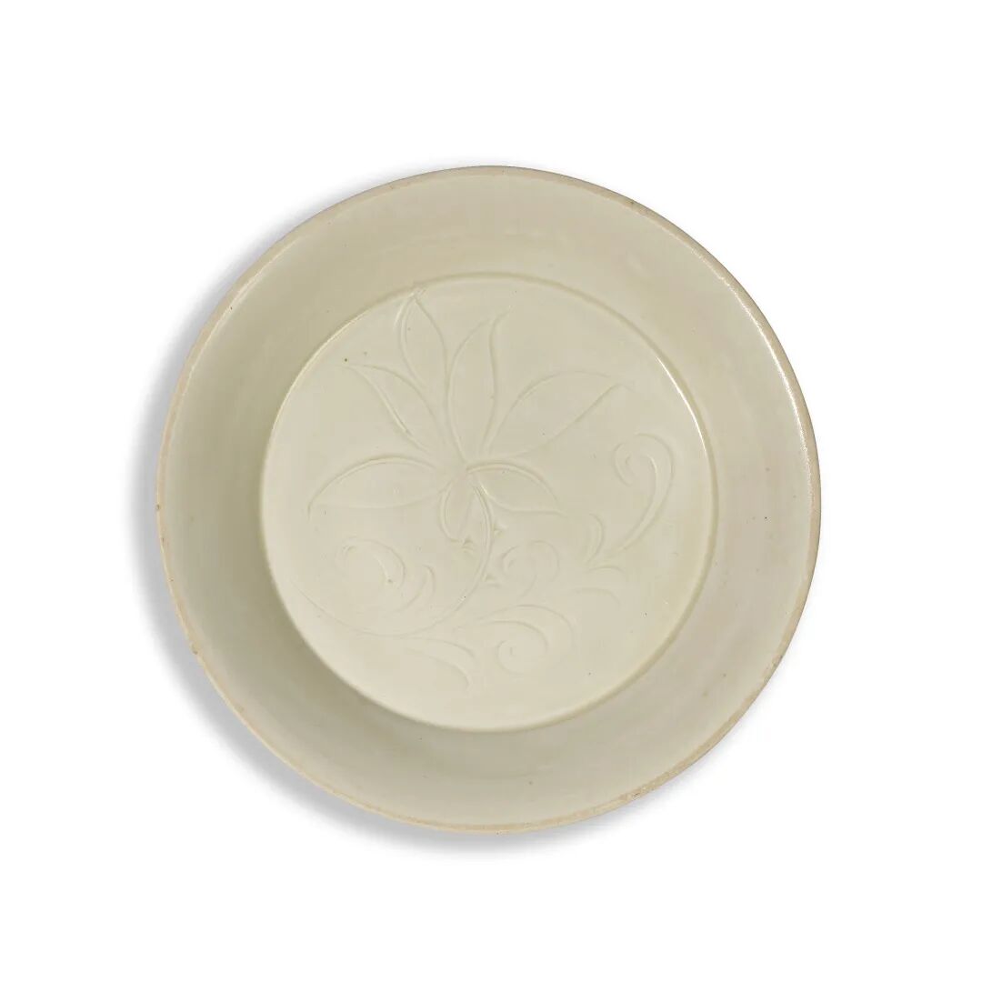 北宋/金 定窑白釉刻萱草纹盘