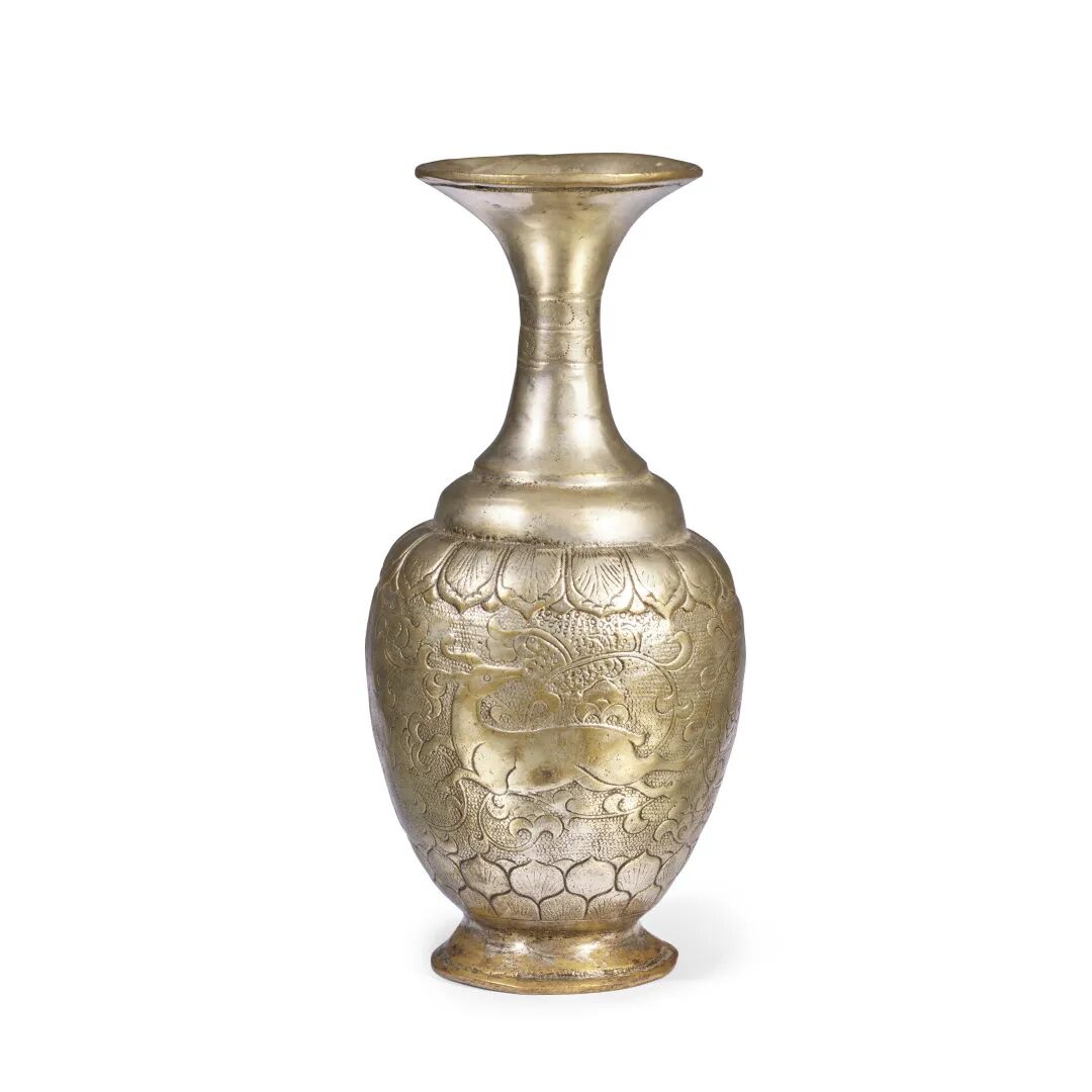 宋 铜鎏银虎猎鹿纹净瓶