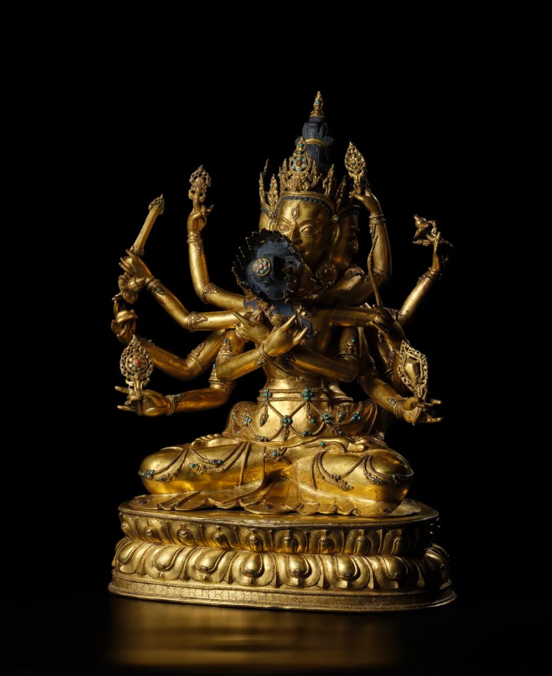 作为克劳德数百件藏品中的冠冕之作,这尊半米高的双身之像不仅为密集金刚题材的罕见之作、更为各个时代与传承的藏传佛教双身像中最为宏大及精美的作品之一。在藏传佛教格鲁派始祖宗喀巴上师(1357-1419年)所倡导之种种变革之下,十五世纪的西藏,正是一段宗教、哲学与文学、艺术创造皆无比繁荣与进步的喧嚣时代。此尊造像正诞生于此背景之下,带有鲜明的藏中艺术大师索南坚赞之风格,代表着当时最高的艺术成就与盛世的磅礴气象。