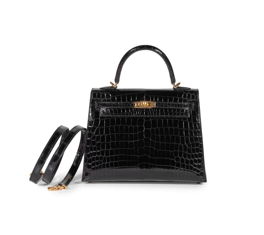 爱马仕:黑色亮面鳄鱼皮外缝凯利包